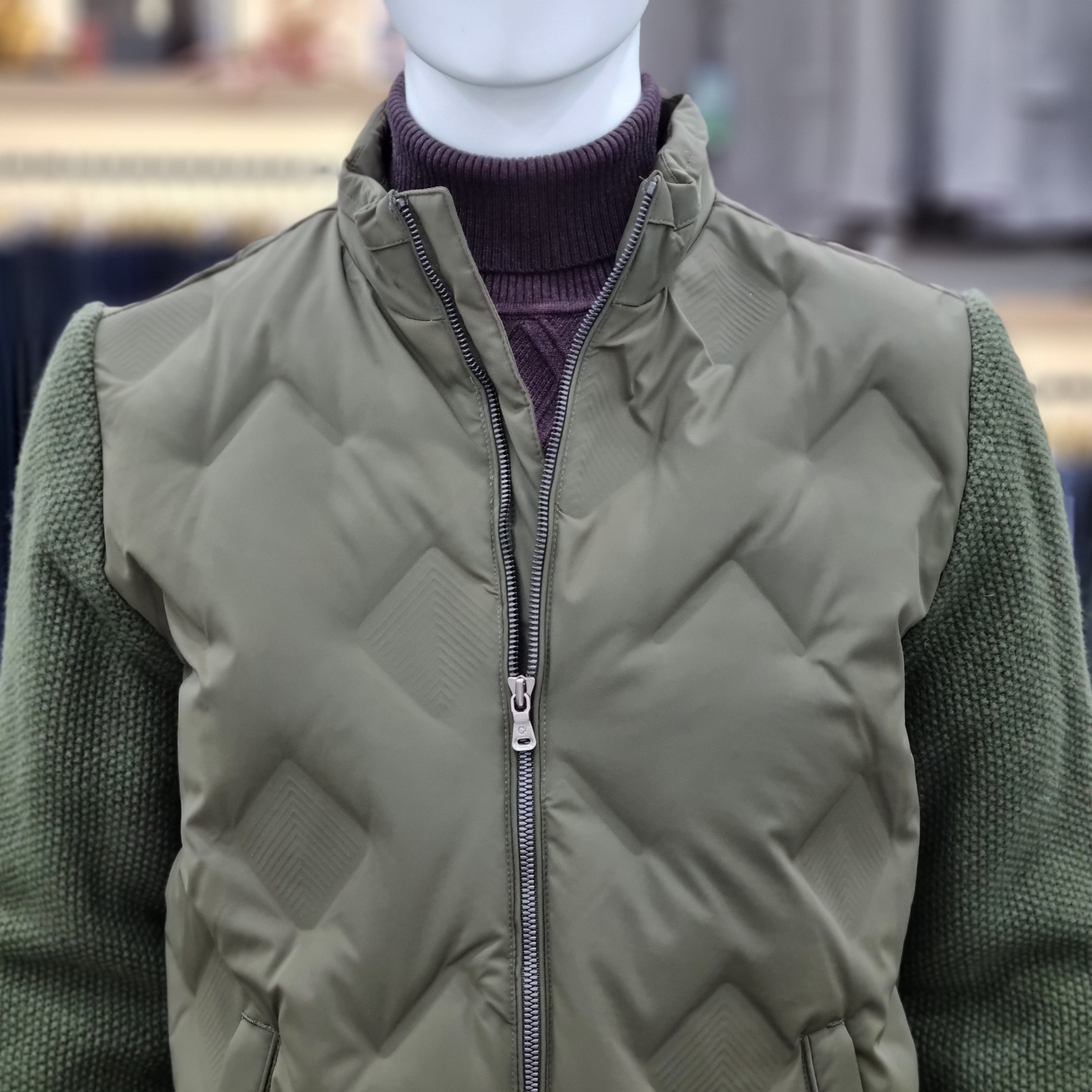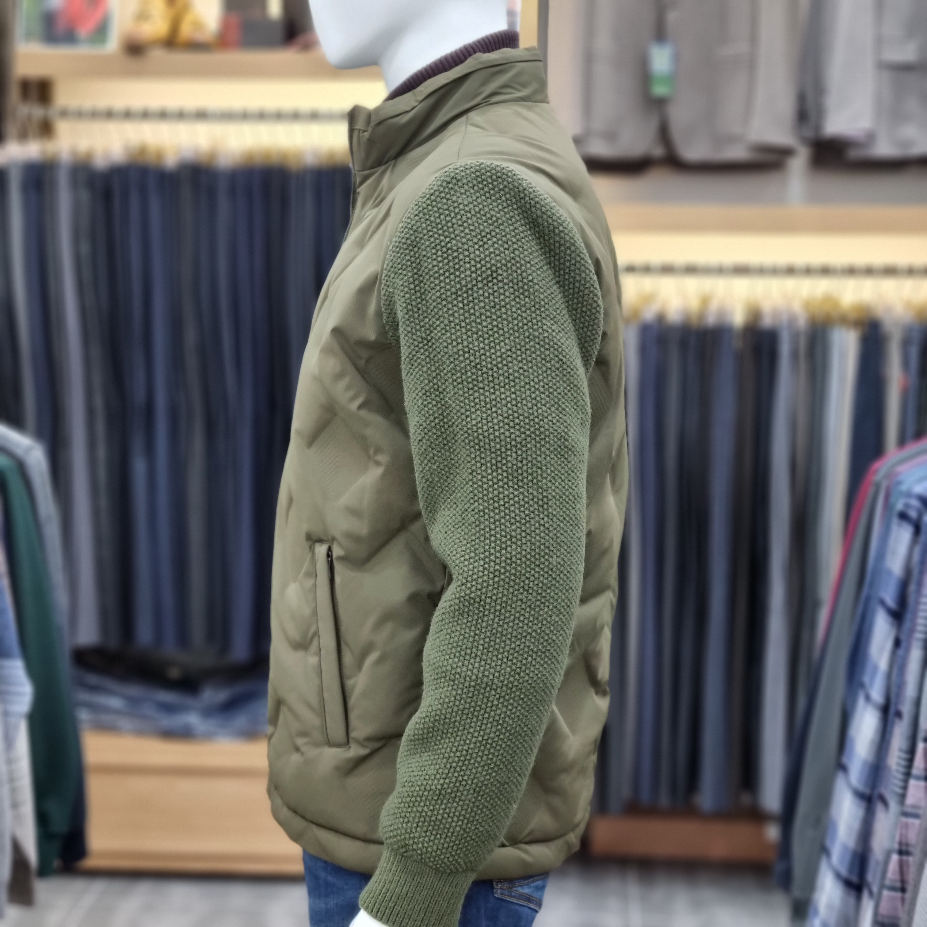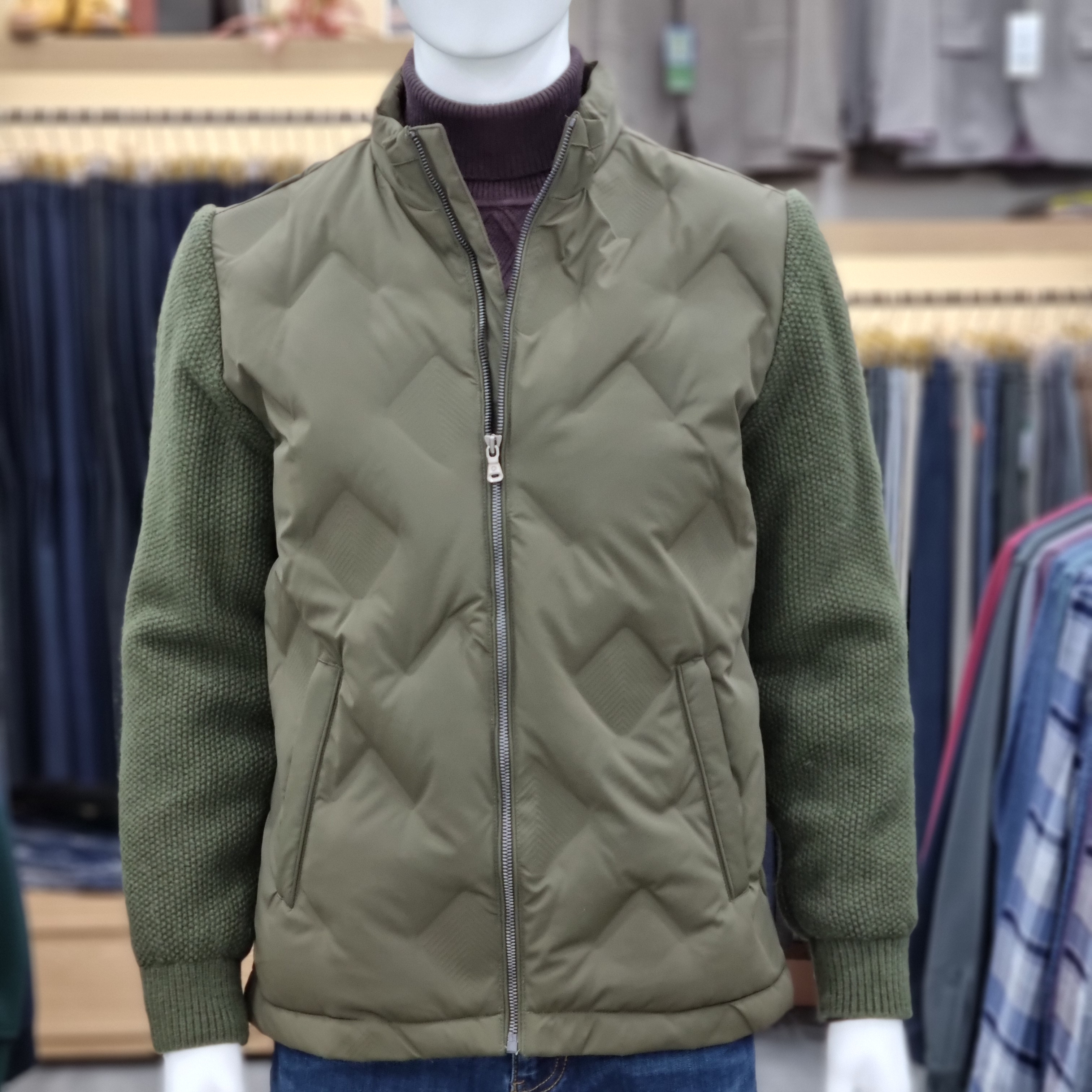 니트소매 무봉제 덕다운점퍼