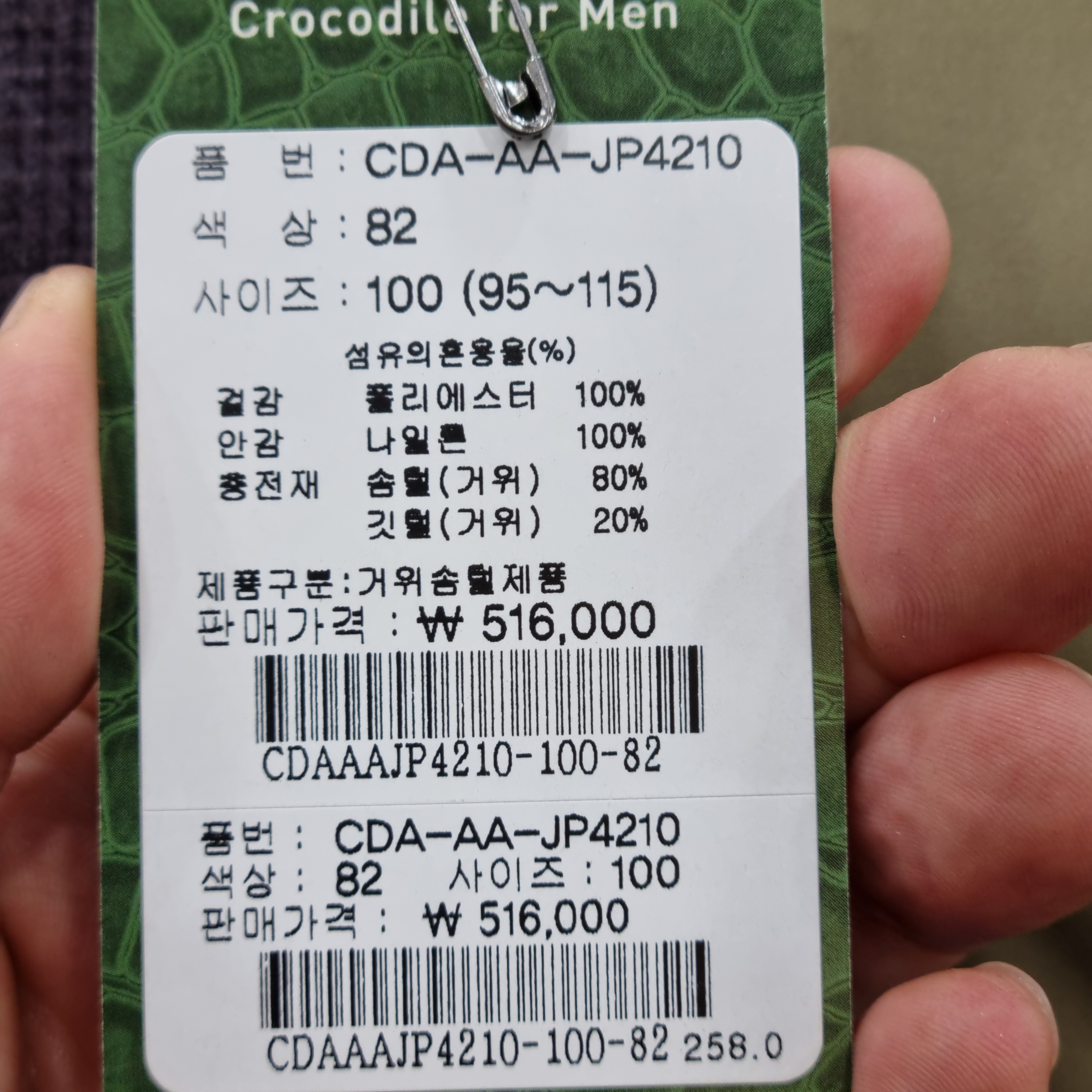 반품 주소 경기 시흥시 장현능곡로 155 모다아울렛 4층 크로커다일남성