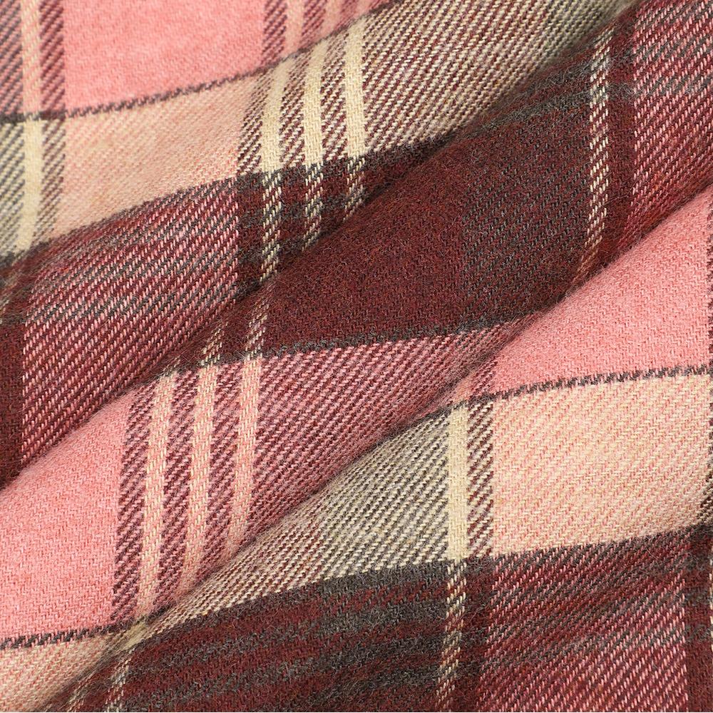 와인톤과 베이지 컬러가 조화를 이룬 타탄 체크 패턴으로 따뜻한 색감이 돋보이며,