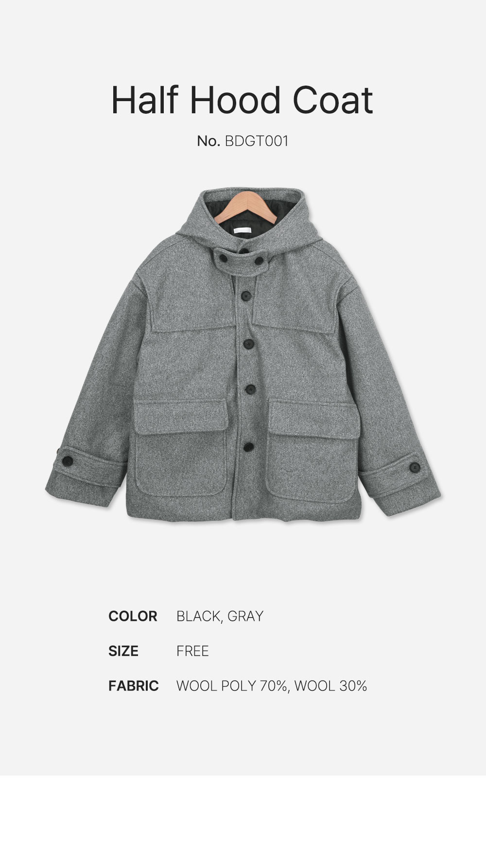 빌리버스 남자 오버핏 헤비 오버핏 하이넥 하프 후드 코트 BDGT001