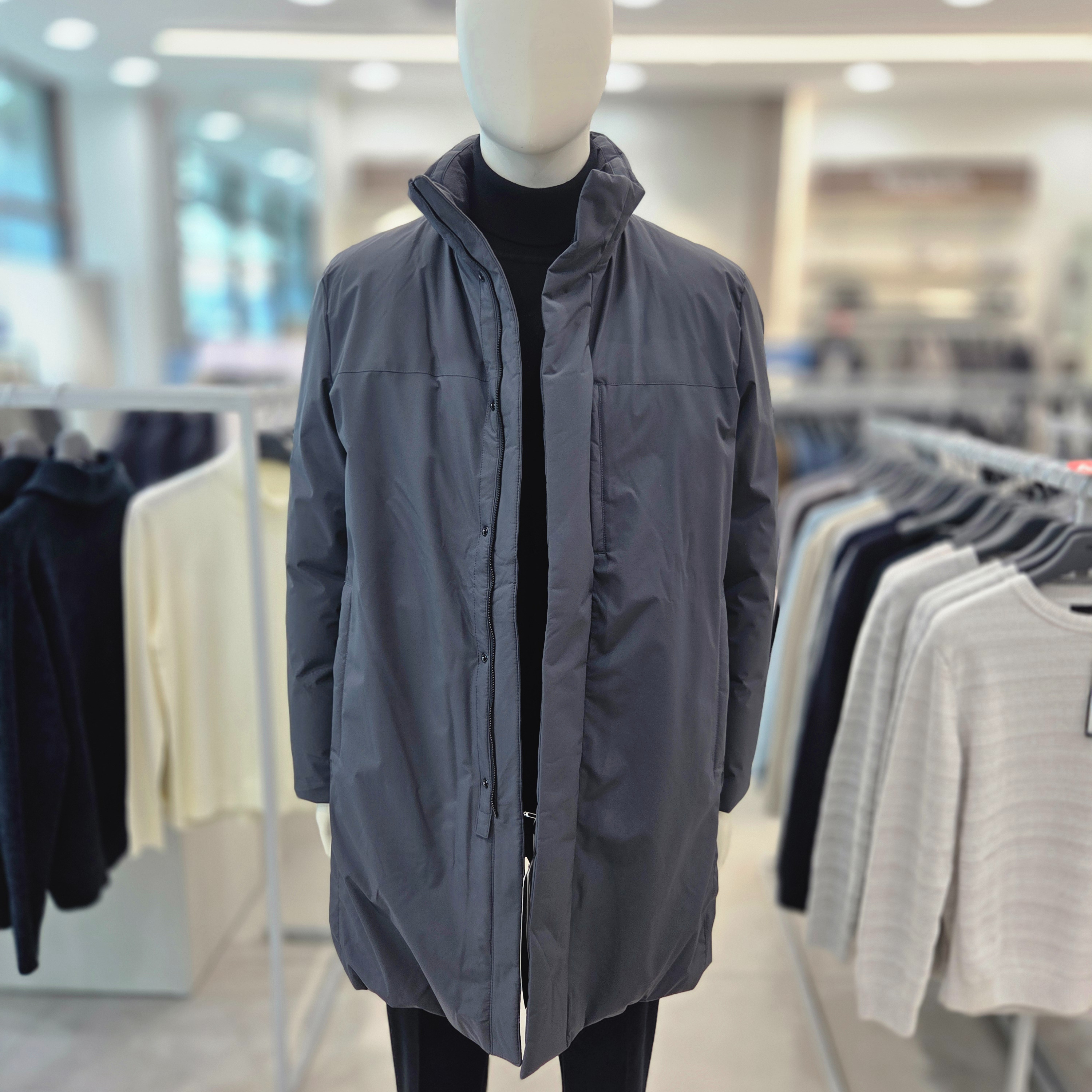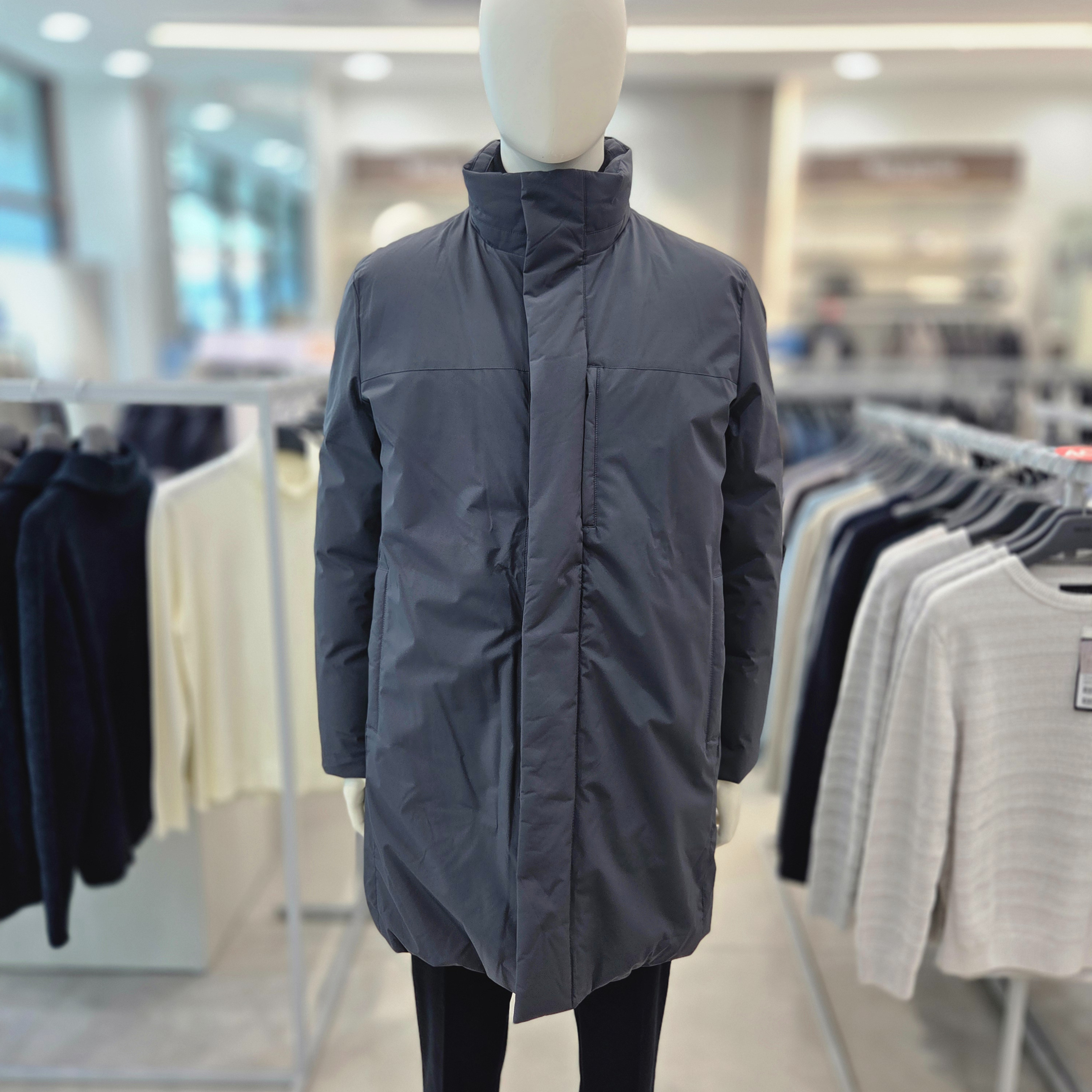 지오지아 패딩 구스다운 코트입니다. 캐주얼 착장과 정장에 잘 어울리는 스타일로 솜털80 깃털20 비율로 가벼우며 따뜻하게 착용하기 좋은 상품입니다