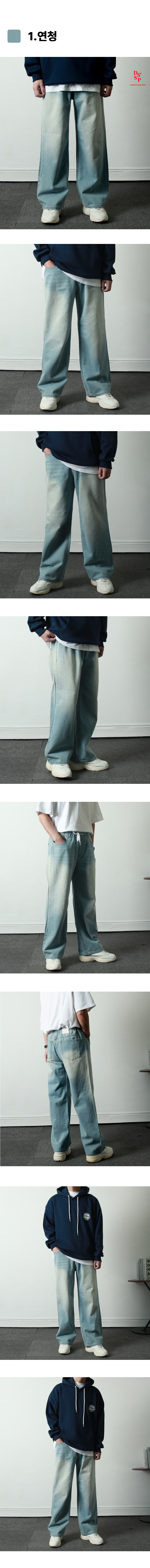 프랭키뉴욕남자 기모 와이드 청바지 융털 밴딩 빅사이즈 통청바지 겨울 연청 중청 흑청바지