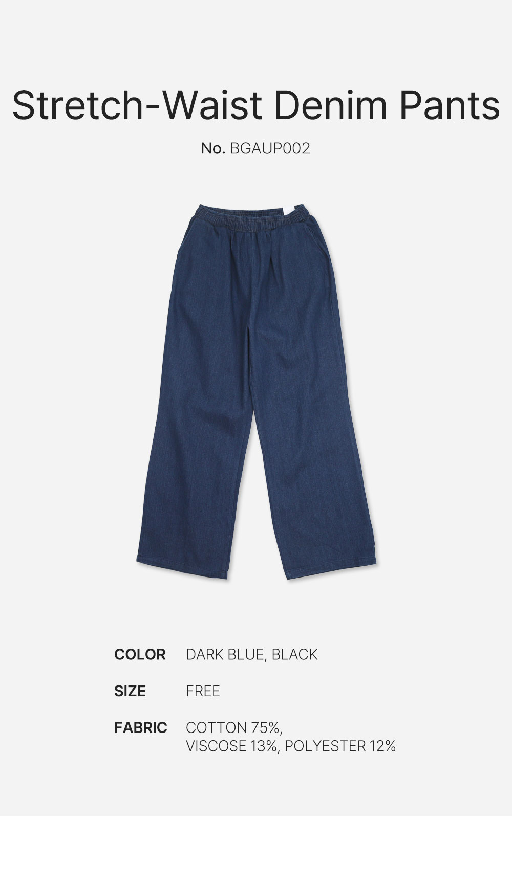빌리버스빌리버스 남성 데일리 심플 루즈핏 와이드 데님팬츠 뒷밴딩 트레이닝바지 BGAUP