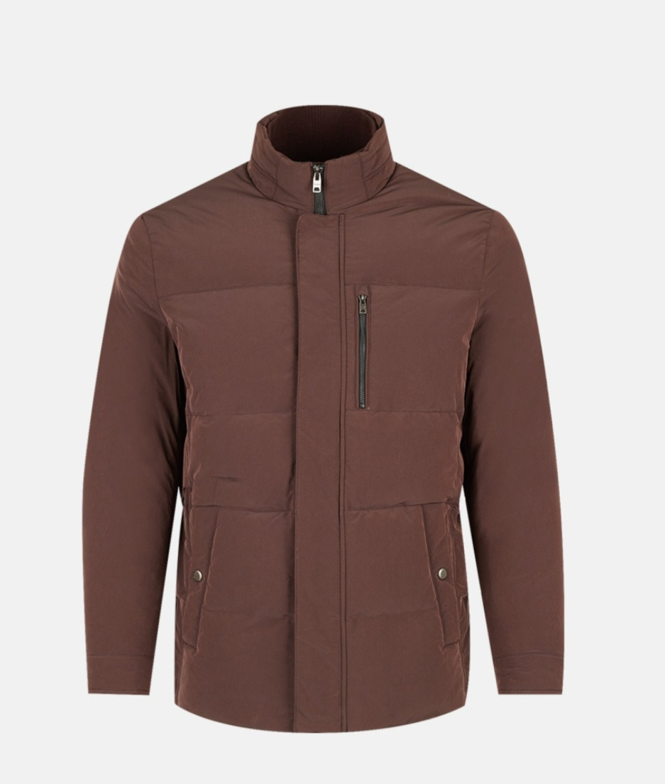 피치 가공한 나일론/폴리 원단을 사용한 덕다운 점퍼입니다. 가로로 심플하게 누벼 데일리하게 착용 가능하며 트렌디한 블루와 와인컬러를 사용해 캐주얼한 분위기를 연출합니다. 카라 안쪽을 니트 처리하여 보온성을 높인 상품입니다.