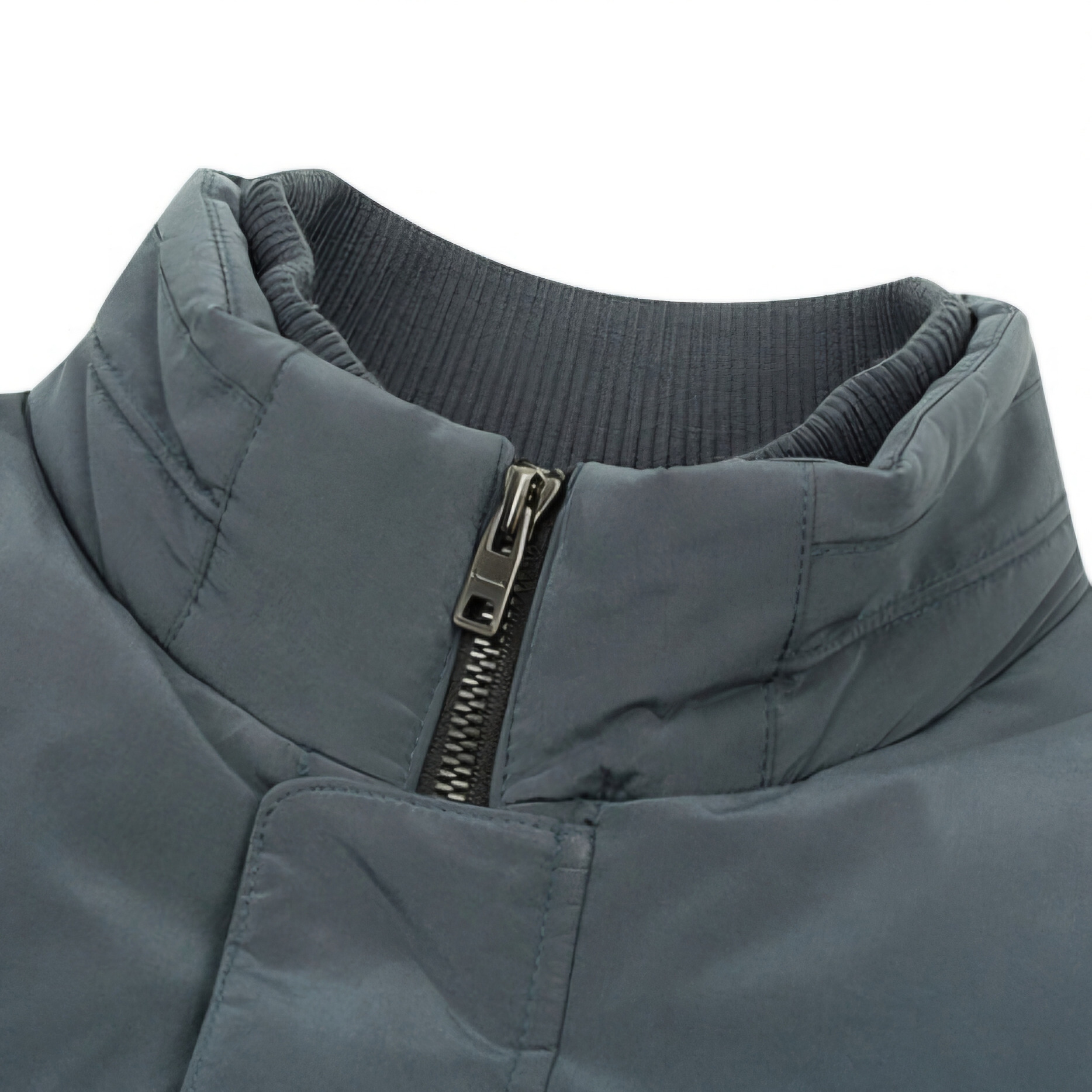 피치 가공한 나일론/폴리 원단을 사용한 덕다운 점퍼입니다. 가로로 심플하게 누벼 데일리하게 착용 가능하며 트렌디한 블루와 와인컬러를 사용해 캐주얼한 분위기를 연출합니다. 카라 안쪽을 니트 처리하여 보온성을 높인 상품입니다.