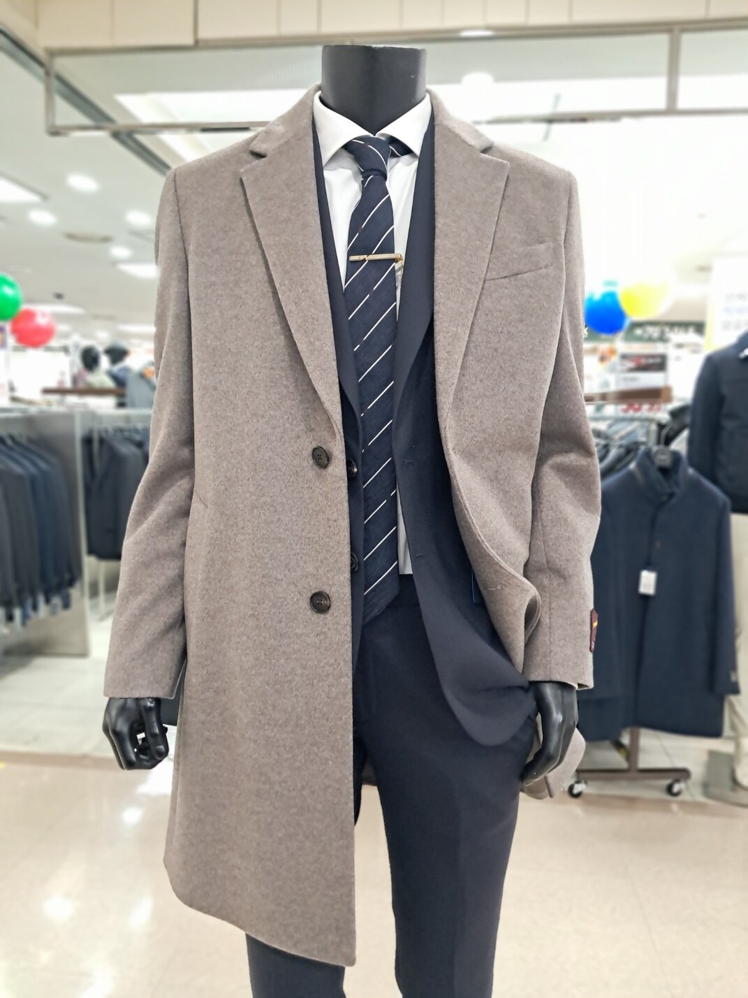 울90%, 캐시미어10%, 의 고급스런 베이지 체스터코트로 길이감도 적당하며, 뒷면에 퀄링이 들어있고 얆아도 따뜻하고 가벼우며, 유행타지않는 정장, 캐쥬얼 어디나 코디가능한 코트입니다. 꼼꼼한 마감 처리로 보온성이 뛰어난 제품입니다. 정사이즈 핏으로 평소 입으시는 대로 입으시길 추천드립니다.