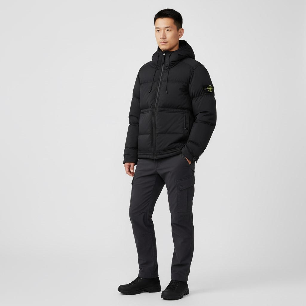 25FW 스톤아일랜드 K2S15 4100019 와펜 패치 매트 립스탑 코듀라 다운 패딩