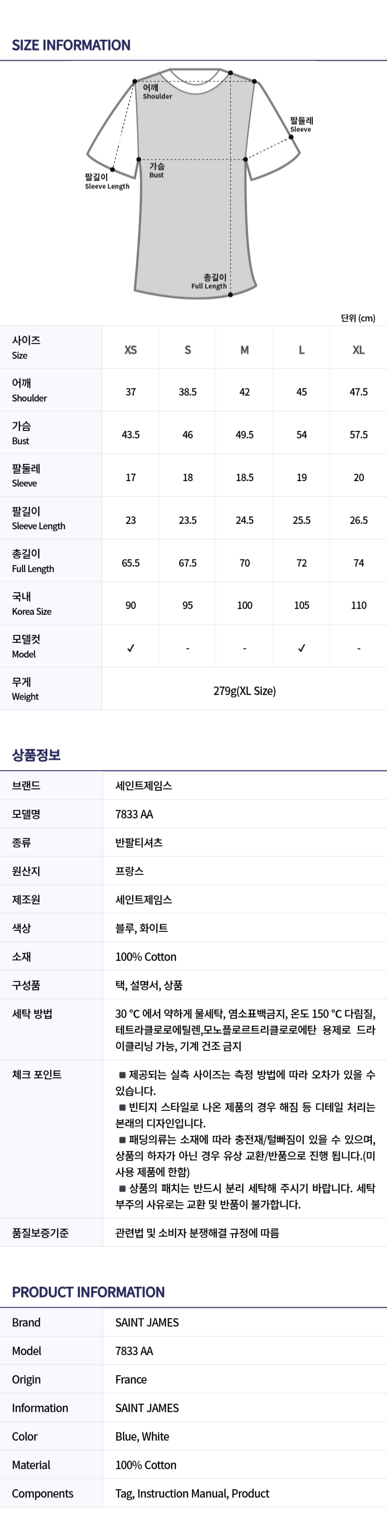 사이즈 | XS(90), S(95), M(100), L(105), XL(110), 무게 (279g(XL Size)) |