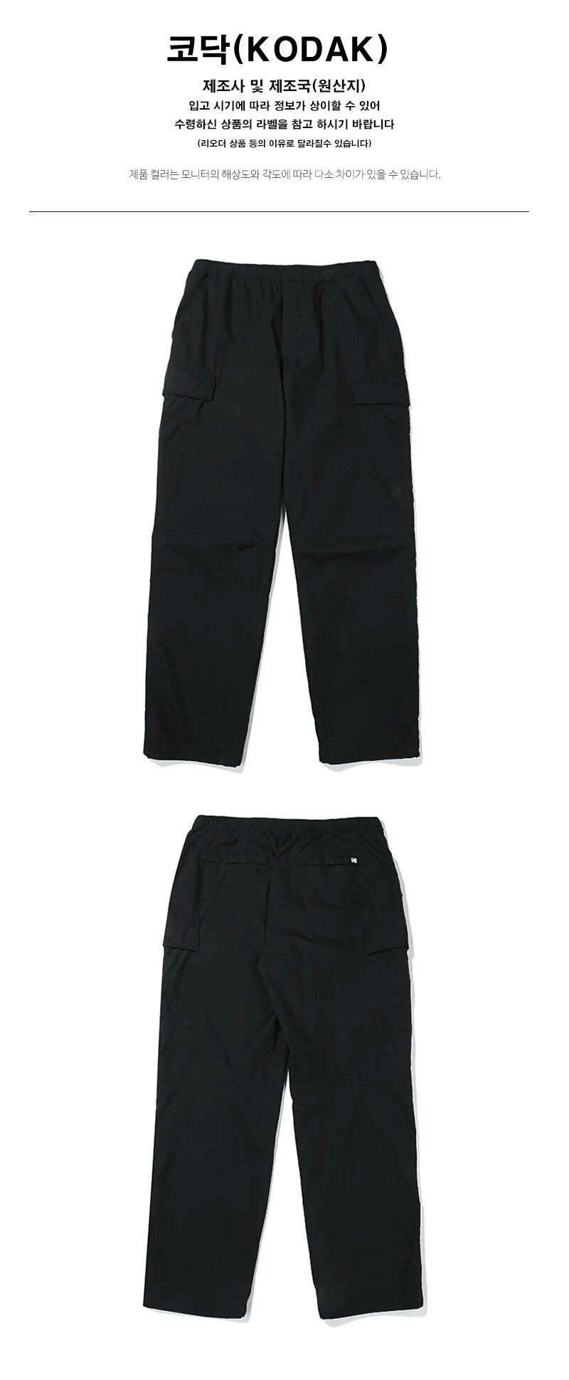 코닥 가먼트워싱 레귤러핏 스트레이트 안감 팬츠 K4323RWPQ1-BLK