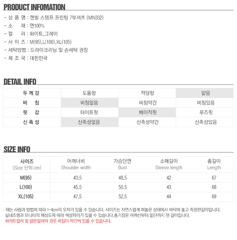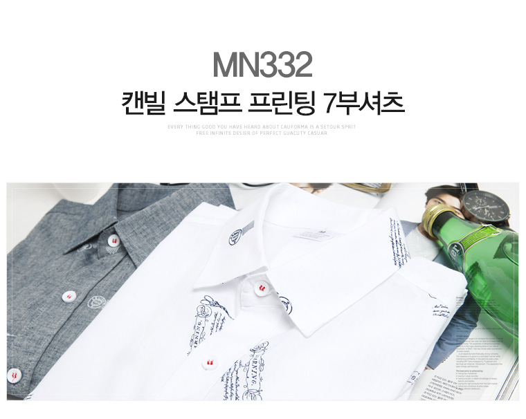 캔빌 스탬프 프린팅 7부 셔츠 MN332 _P079967070