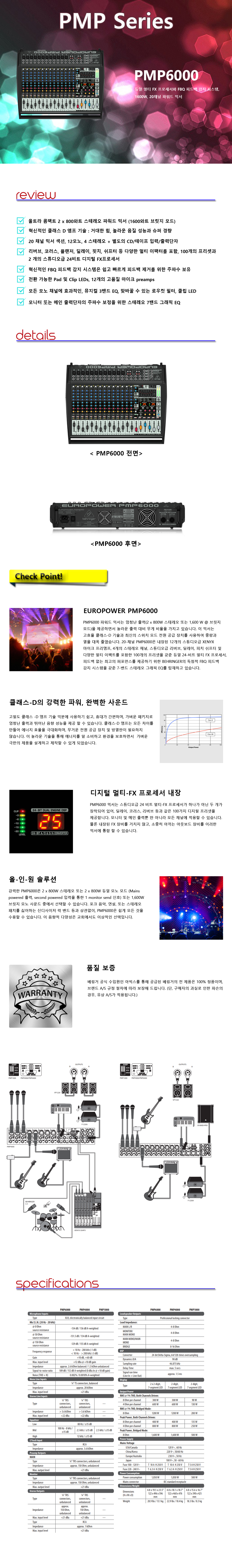 베링거 PMP6000 1600W 20채널 파워드믹서 앰프