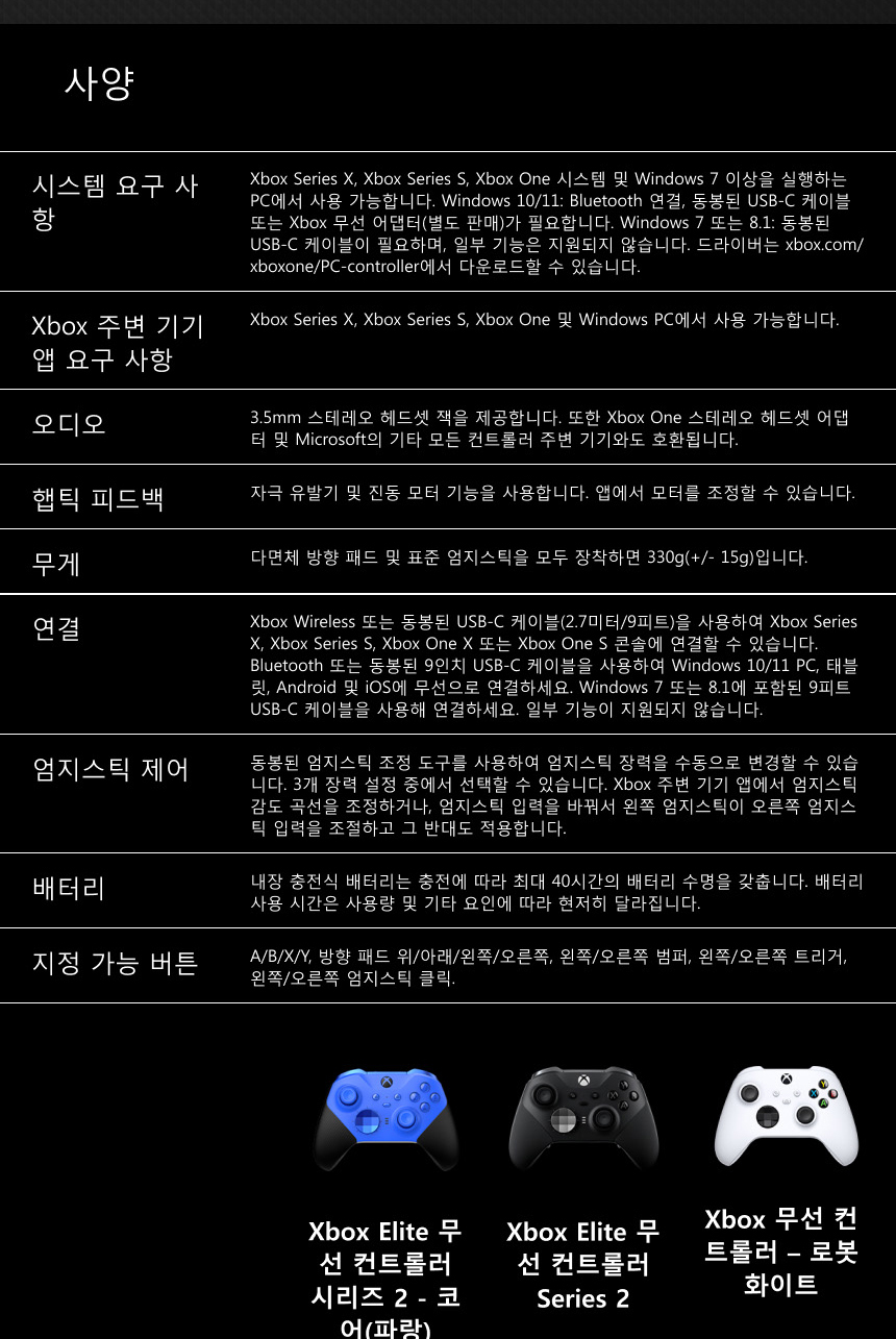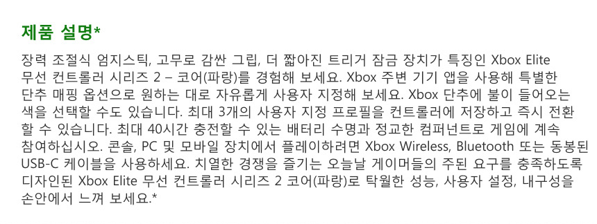 Xbox Elite 엘리트 무선 컨트롤러 Series 2 코어 블루