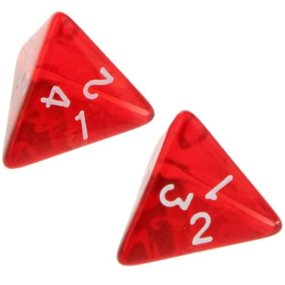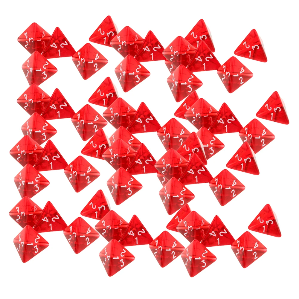 100 pcs/set 20mm 4 면 다면체 주사위 아크릴 D4 DND RPG 주사위 투명 레드 보드 게임 수학 교육 주사위 세트