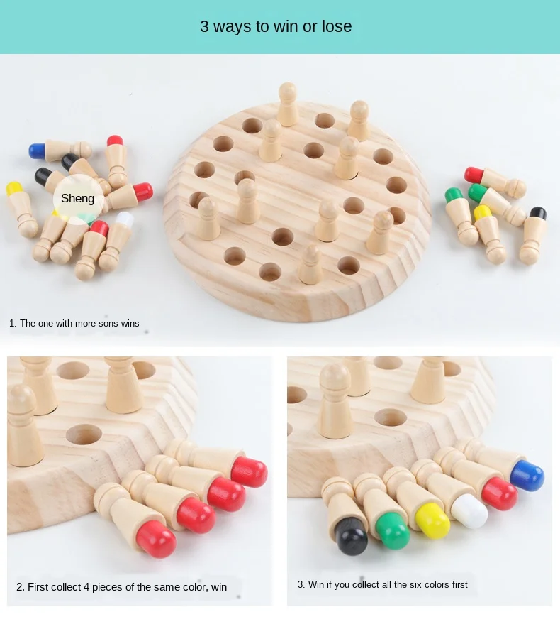 타임딜 나무 메모리 스틱 체스 게임 재미 컬러 보드 교육 색상인지 능력 어린이 장난감 선물