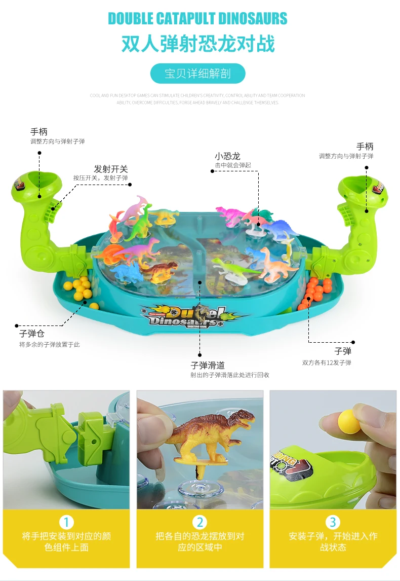 타임딜 어린이 대리석 투석기 장난감 공룡 배틀 보드 플레이 부모 자녀 더블 게임기 교육용 2 인용 테이