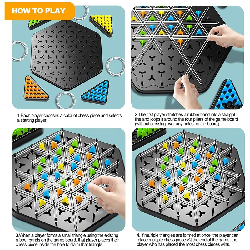 5. 이상적인 선물: 우리의 삼각형 체스 데스크탑 게임은 이상적인 어린이 선물을 만들어 문제 해결 기술과 훌륭한 운동 능력을 향상시킵니다. 생일, 크리스마스, 새해, 할로윈과 같은 행사에 적합하며 기쁨을 가져다주고 인지 발달을 향상시키는 독특한 선물을 제공합니다.