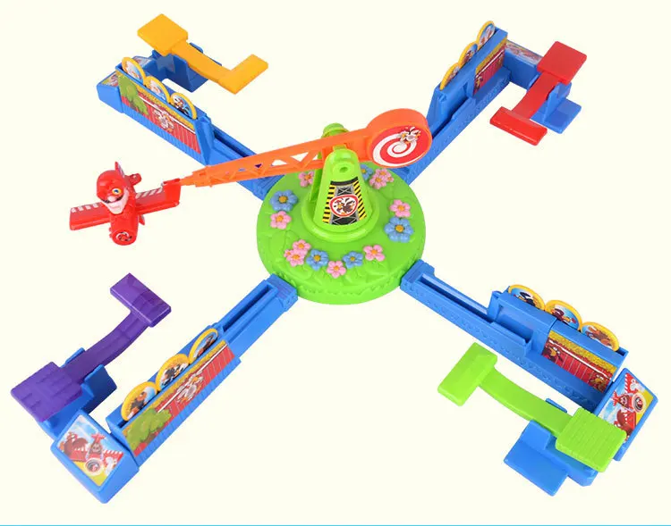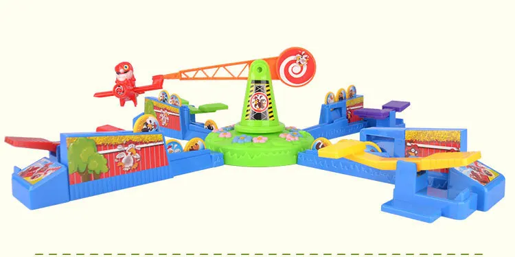 기둥에, 준비, 가자! 어린이 연극 고전 루핑 루이에서, 부러지는 조종사 루이는 배터리로 움직이는 비행기로 3 차원 놀이 풍경 위를 날아다닌다. 최대 4 명의 플레이어 각각에는 닭장이 있으며, 지붕에는 펄럭이는 동물이 플레이 칩 형태로 기둥에 앉아 있습니다. 시소는 각 플레이어의 마당 앞에 부착되어 닭 사육사가 위협적인 선회 비행기를 격퇴하고 돌릴 수 있습니다. 이제 모든 플레이어를 조심해야합니다. 반응하지 않고 번개 반사로 시소로 마구간에 충돌하는 전단지를 격퇴하는 사람들은 곧 더 이상 모든 닭을 기둥에 갖지 않기 때문입니다. 재미있는 커뮤니티 게임은 젊은이와 노인에게 영감을주고 다음 가족 저녁에 흥미 진진한 엔터테인먼트를 제공합니다.