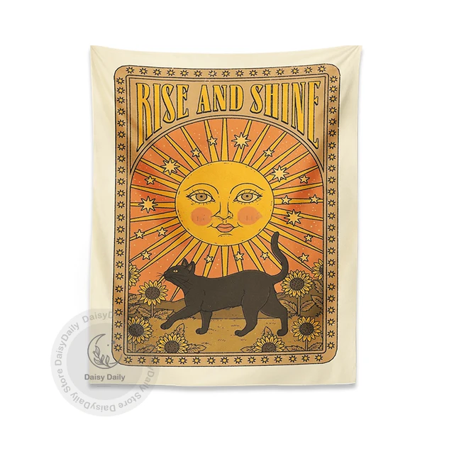 저스트씨 라이즈 앤 샤인 타로 고양이 태피스트리 태양 빈티지 벽걸이 요술 점술 보호 히피 피카델릭 미적