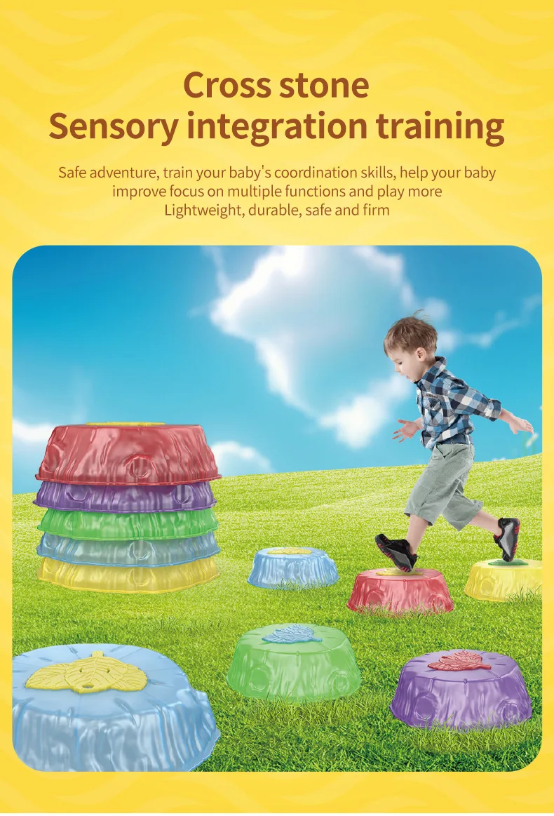 타임딜 어린이 감각 훈련 조명으로 강 돌 건널 무지개 밸런스 보드 장애물 넘기 게임