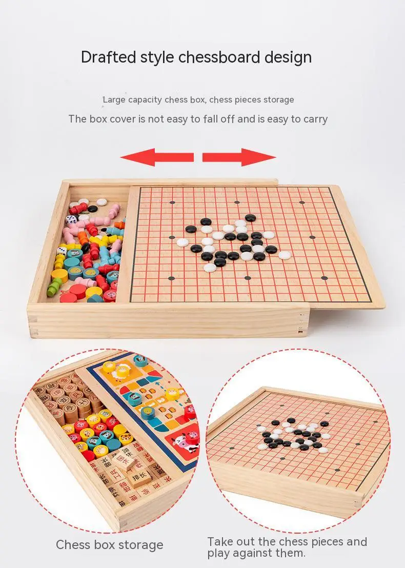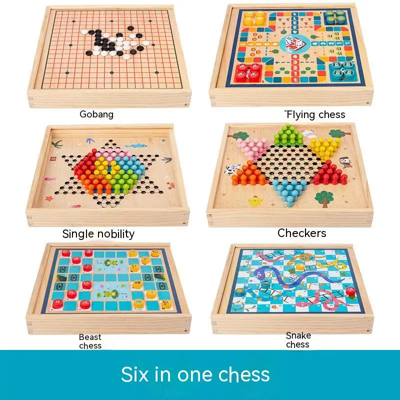 8 명 어린이 다기능 보드 체스 나무 비행 체스 체커 고방 중국 체스 성인 부모-자식 게임
