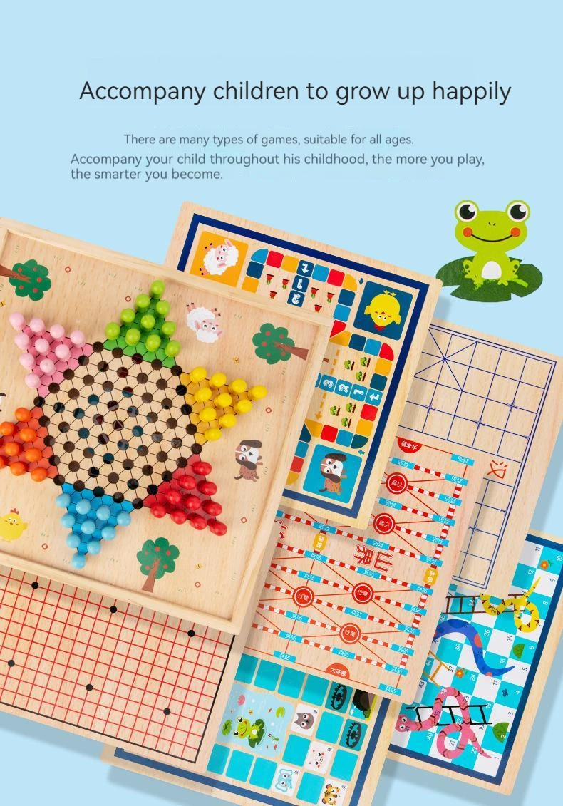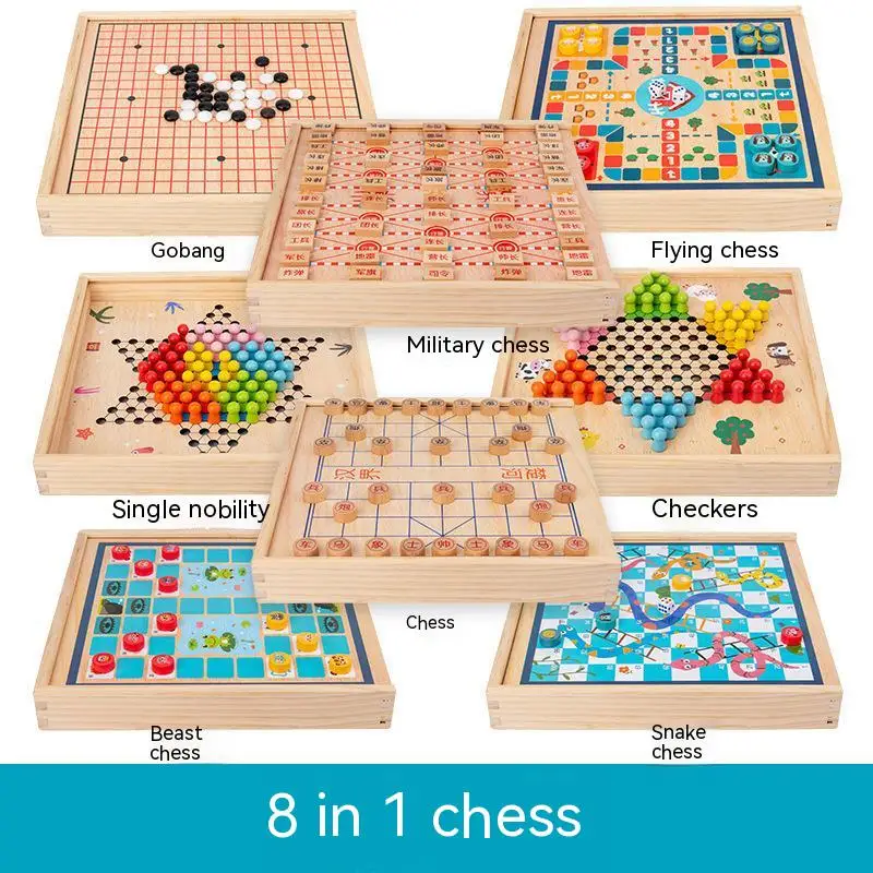 타임딜 8 in One 어린이 다기능 보드 체스 나무 비행 체커 Gobang 성인 육아 게임