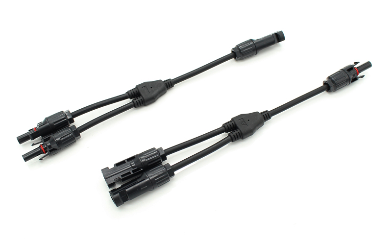 -1쌍의 Y형 태양광 패널 케이블 커넥터: 암-쌍 수(F/M/M) 1개 및 수-쌍 암(M/F/F) 1개