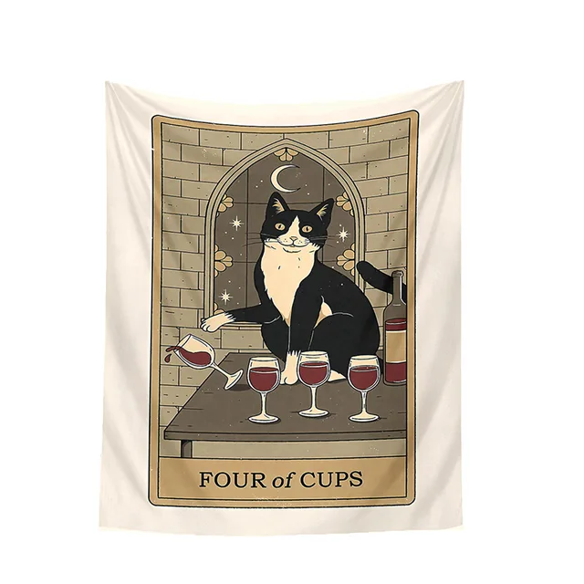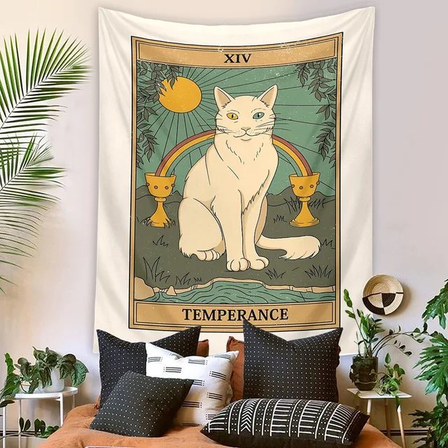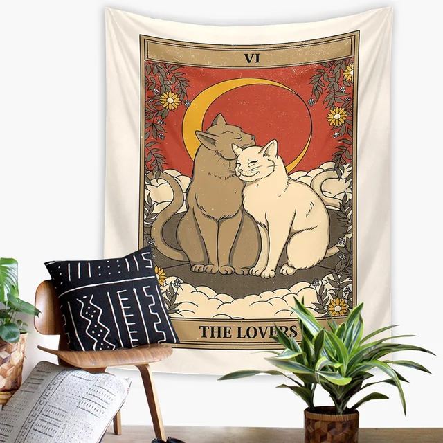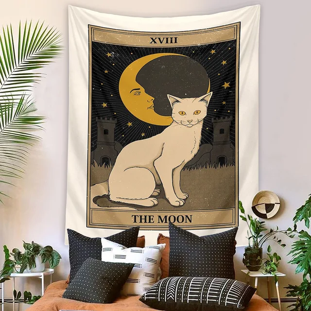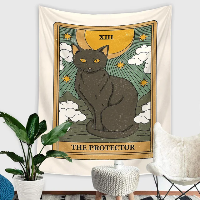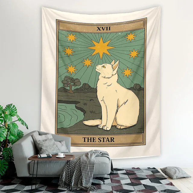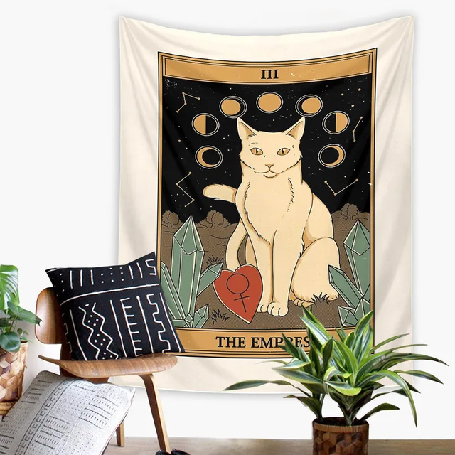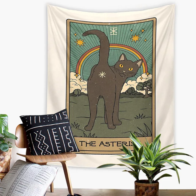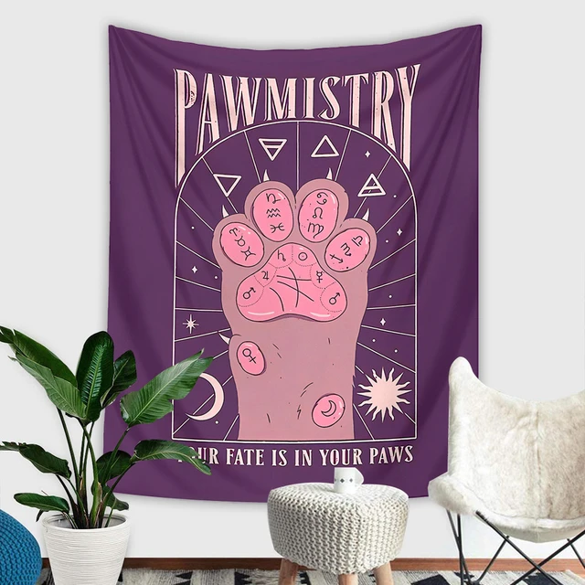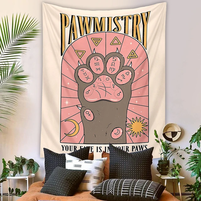 저스트씨 타로 고양이 발 태피스트리 벽걸이 보헤미안 요술 홈 장식 히피 매트리스 기숙사 75x58cm