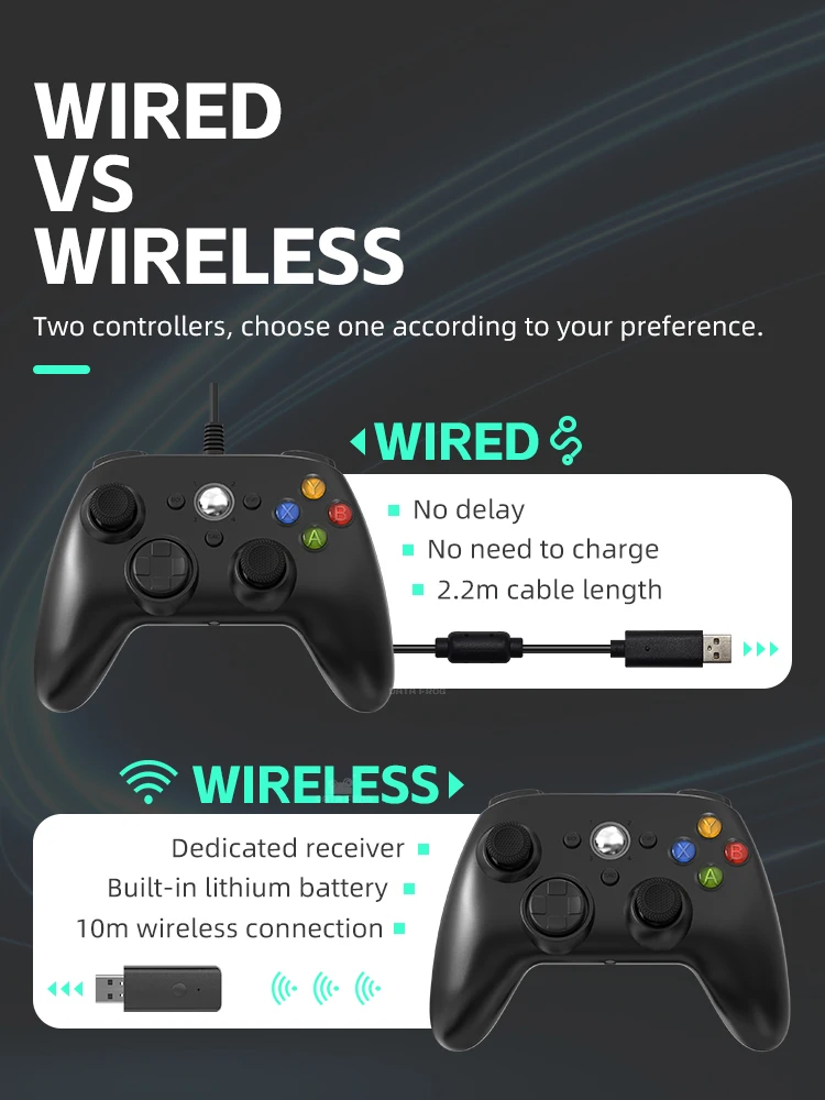 360 무선 유선 컨트롤러 이중 진동 360/360 슬림 및 PC 윈도우와 호환 가능