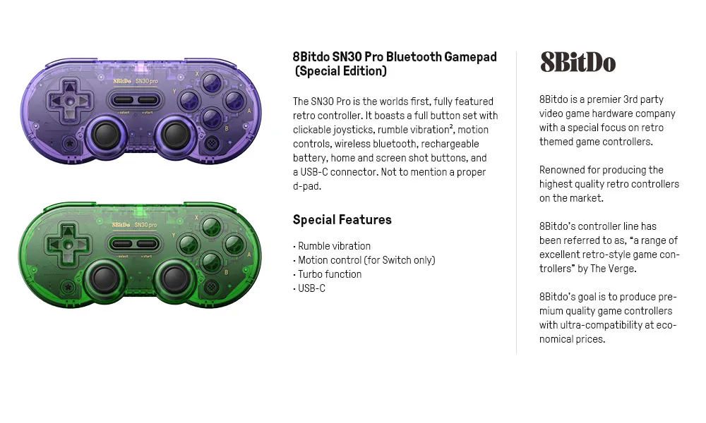Model | 8BitDo SN30 Pro Bluetooth Gamepad |