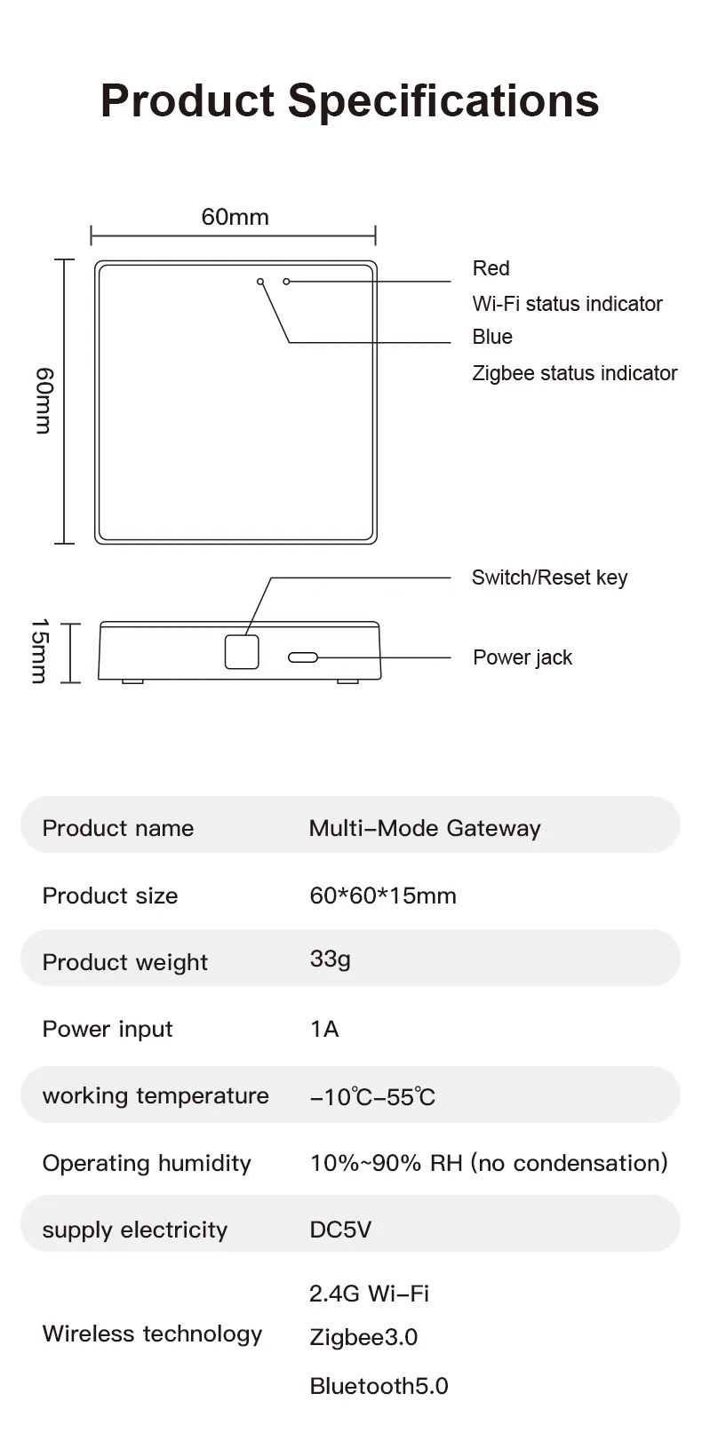 ? 멀티 모드 연결:Tuya 게이트웨이 허브는 멀티 모드 ZigBee Bluetooth 연결을 제공하여 스마트 가전 제품과 장치 간의 원활한 통신 및 제어를 보장합니다.