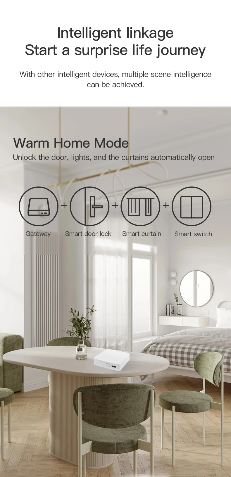 ? 스마트 홈 제어:스마트 홈 제어를 위해 설계된 이 브리지를 사용하면 스마트 가전 제품을 원격으로 관리하여 생활 공간의 편리함과 편안함을 향상시킬 수 있습니다.