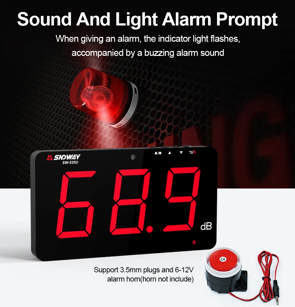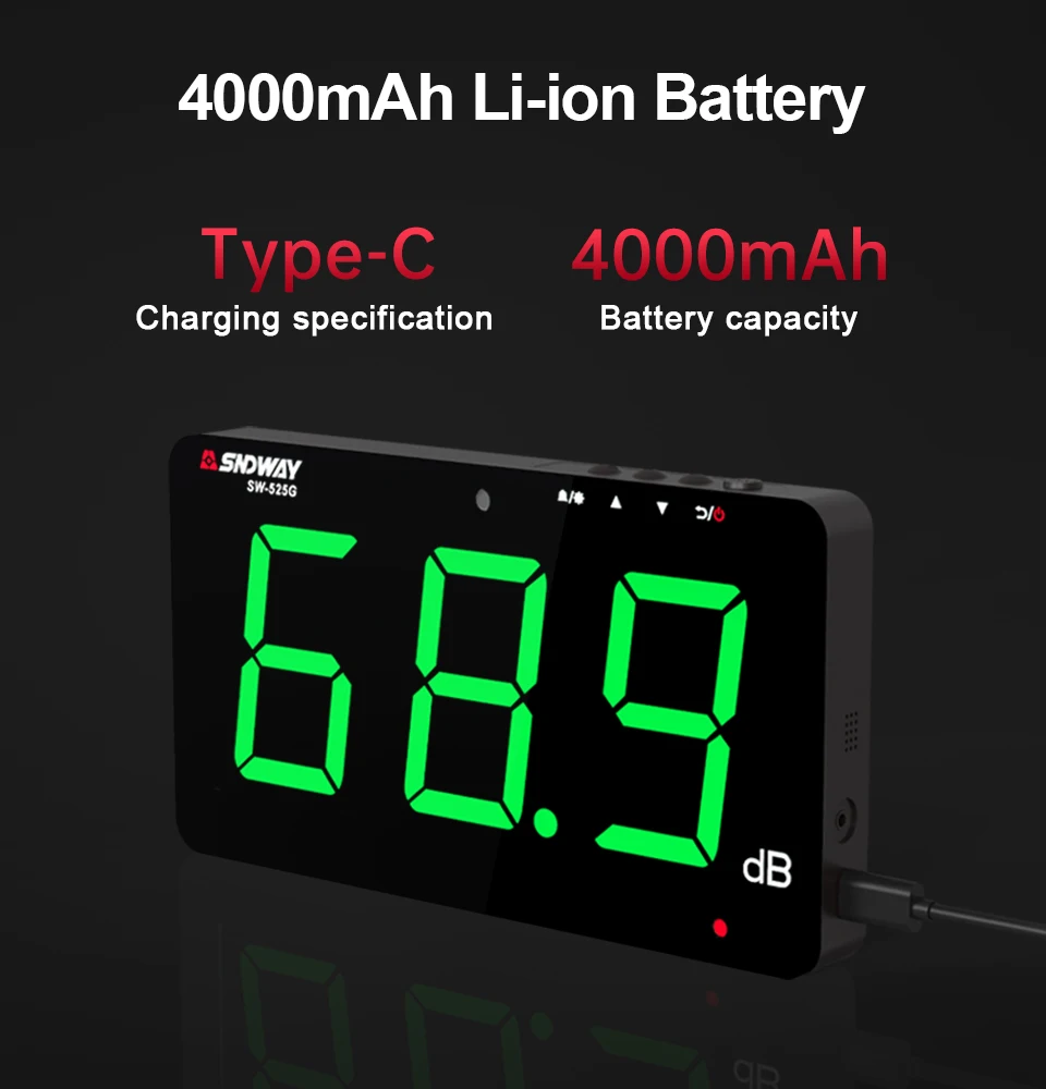SNDWAY 디지털 사운드 레벨 미터 30db to130db 소음 레벨 데시벨 미터 DB PC에 데이터 저장 장치가있는 데시벨림 측정기