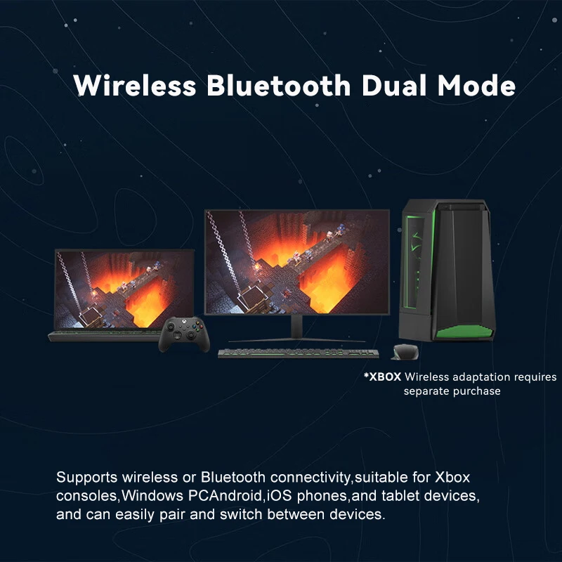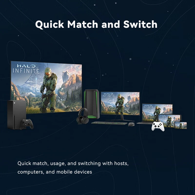 무선 또는 블루투스 연결을 지원하여 Xbox 콘솔, Windows PCAndroid,iOS 전화 및 태블릿 장치에 적합하며 장치간에 쉽게 페어링하고 전환 할 수 있습니다