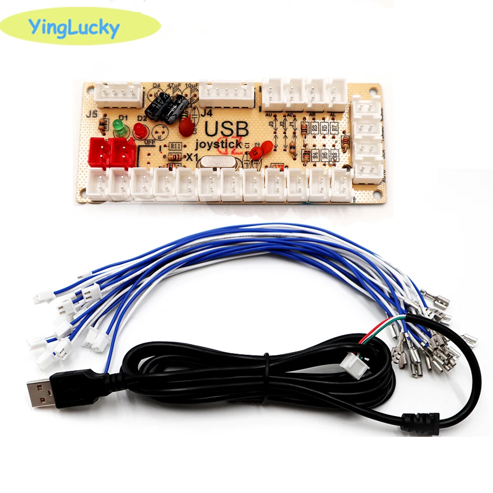2 플레이어 제로 지연 아케이드 USB 인코더 PC 아케이드 조이스틱 토글 PCB LED 라이트 와이어 2.8mm 또는 4.8mm 와이어