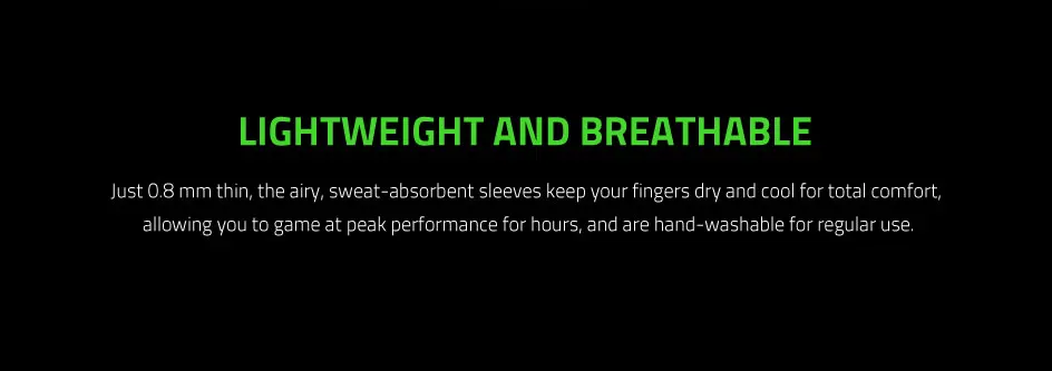 0.8mm 얇은 통풍이 잘되고 땀을 흡수하는 슬리브로 손가락을 건조하고 시원하게 유지시켜 주며 최고의 성능을 몇 시간 동안 유지할 수 있습니다. 정기적 인 사용을 위해 손으로 빨 수 있습니다.