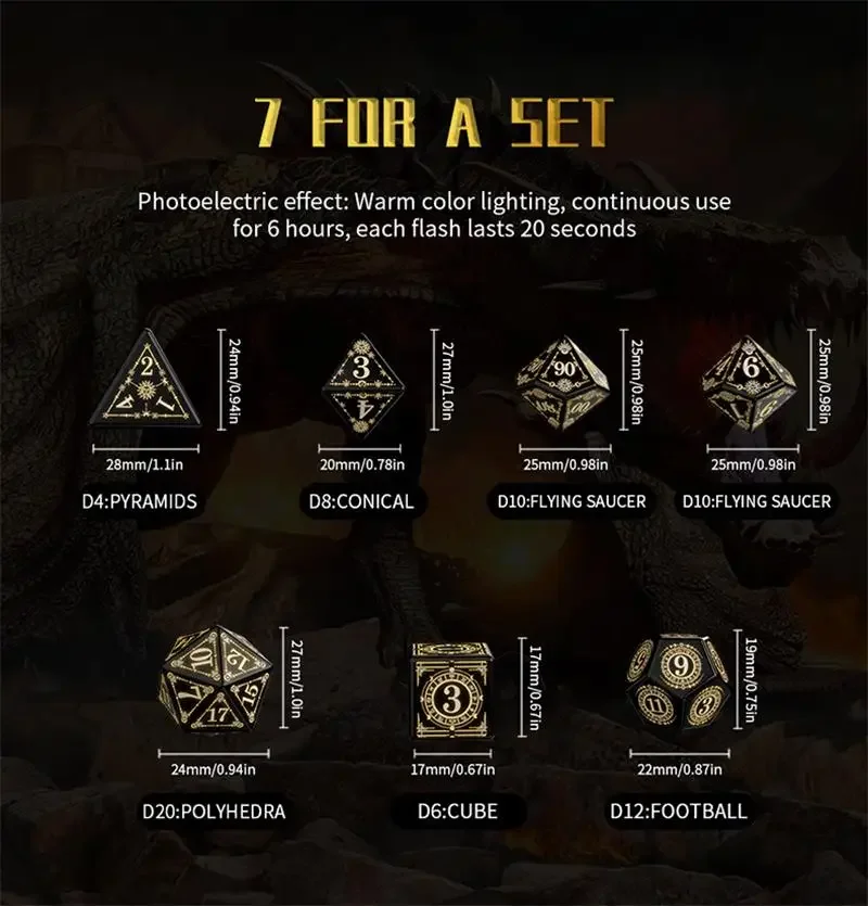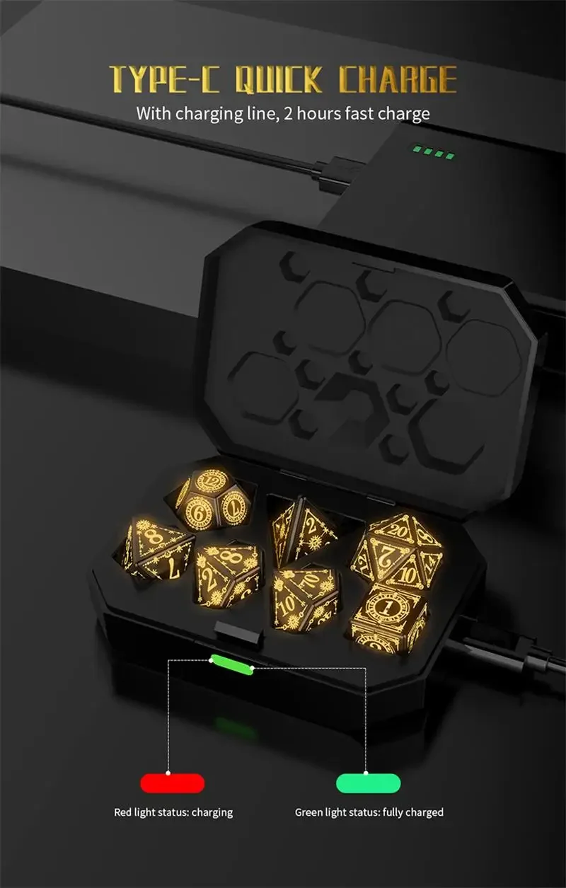 충전식 게임 주사위 탁상 게임용 LED 발광 주사위 RPG D D 주사위 생일 선물 새로운 크리에이티브 7 개