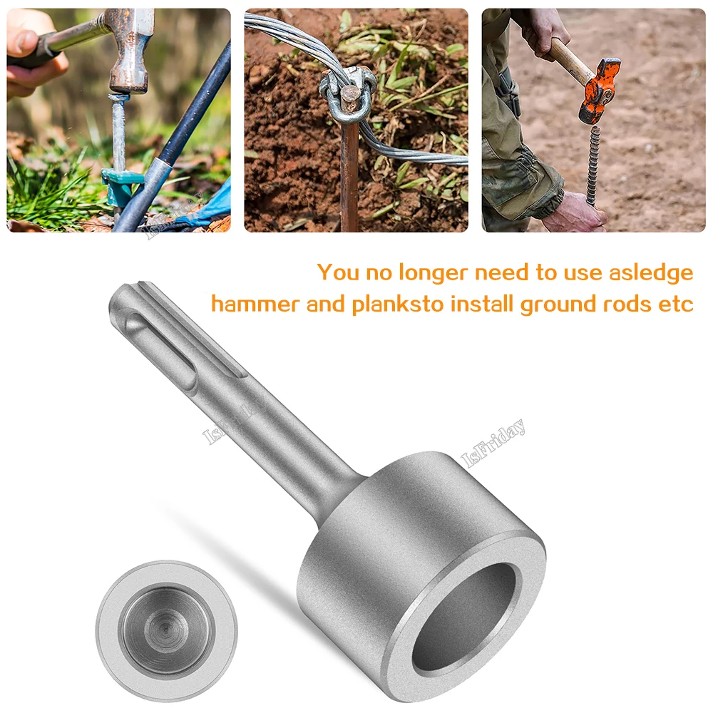 접지로드 드라이버는 거의 모든 브랜드의 SDS 플러스 시스템 로터리 해머 및 해머 드릴과 호환됩니다. 구입하기 전에 도구에 맞는지 확인하십시오.