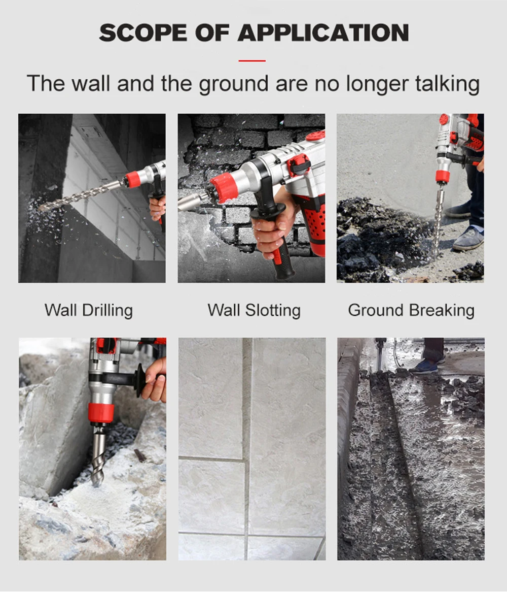 220V 로타리 전기 해머 임팩트 드릴 2200W 전기 콘크리트 철거 드릴 다기능 전기 해머 드릴 전기 선택