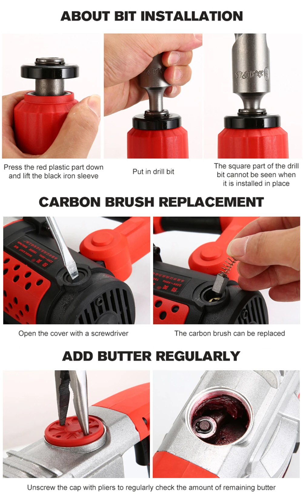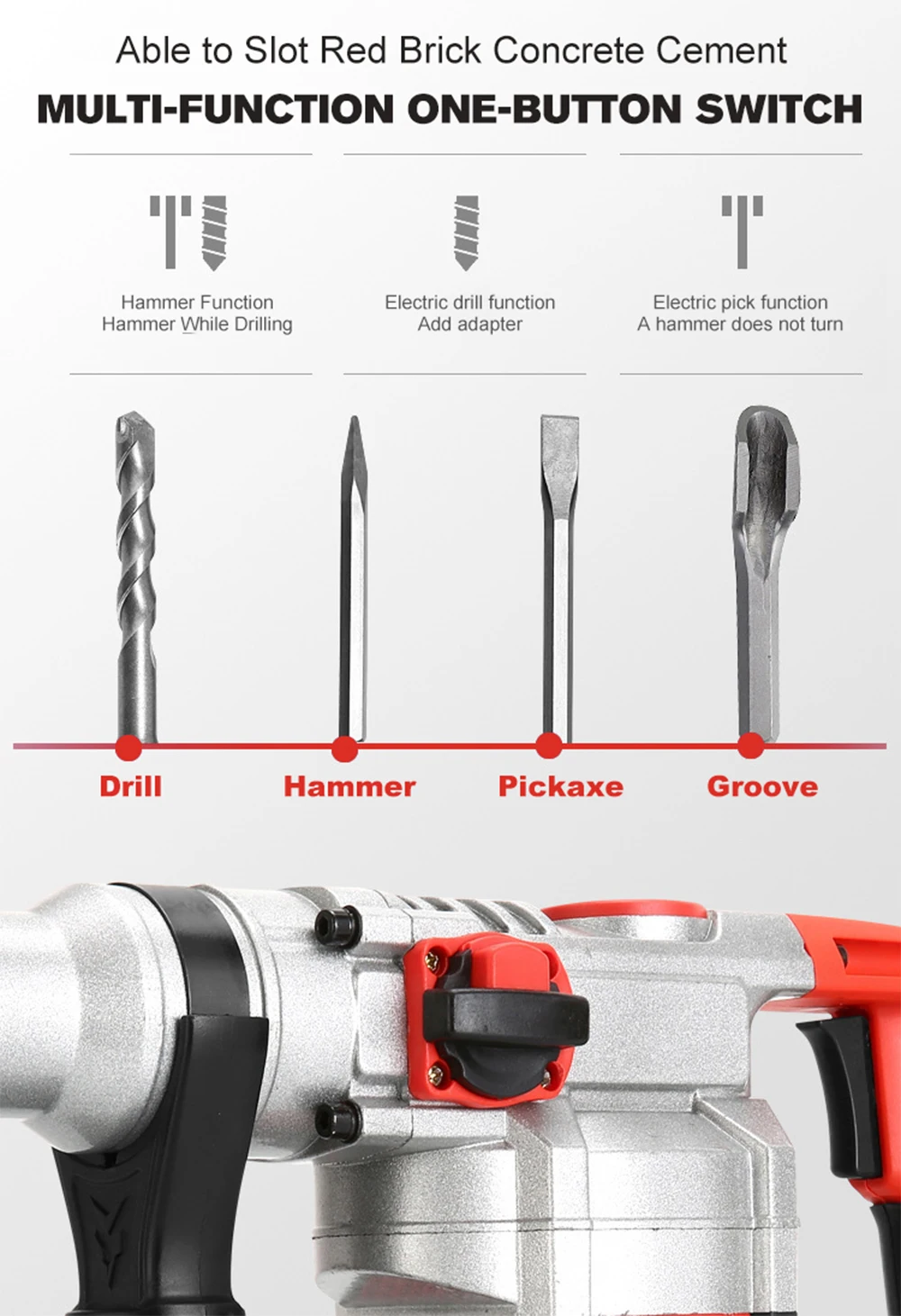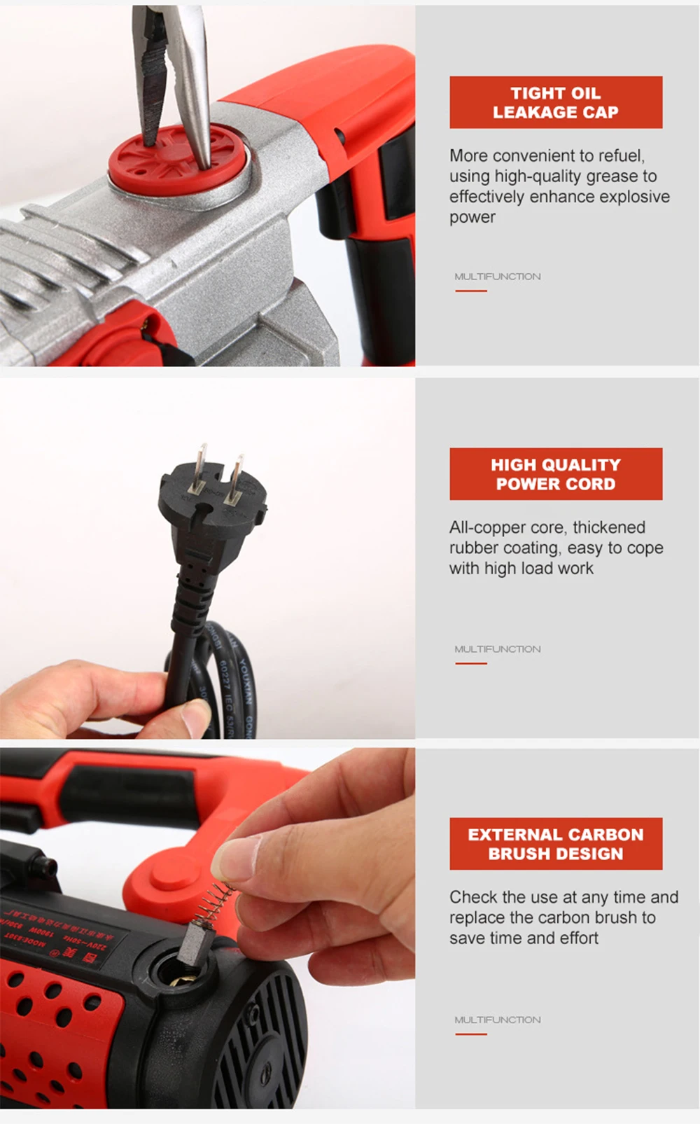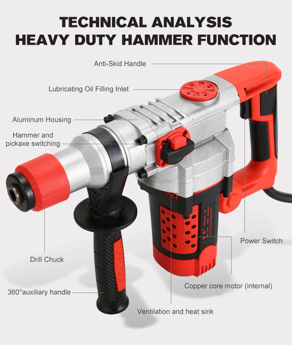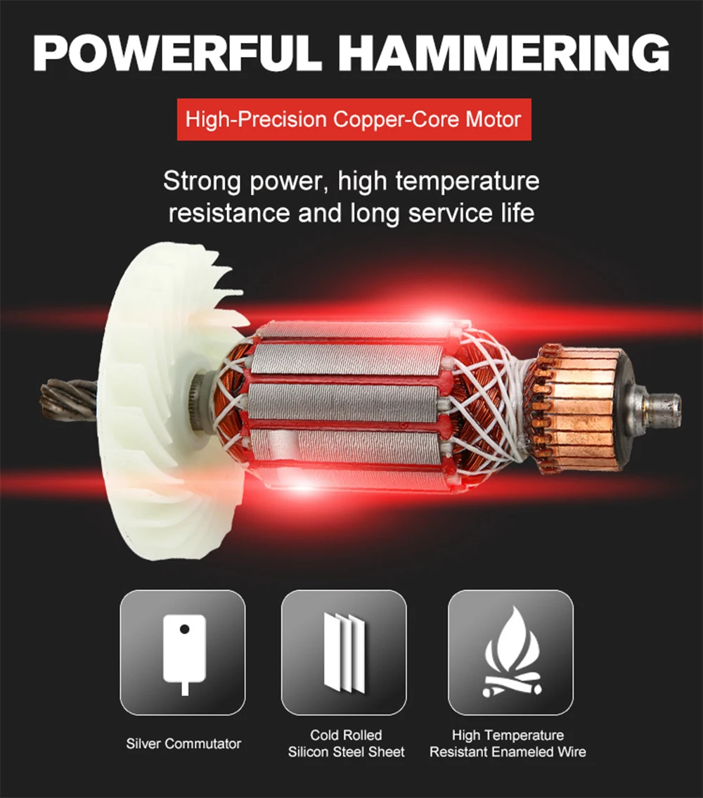 -경험 업그레이드, 고성능 강력한 망치, 고정밀 구리 코어 모터, 강력한 전력, 고온 저항, 긴 서비스 수명.