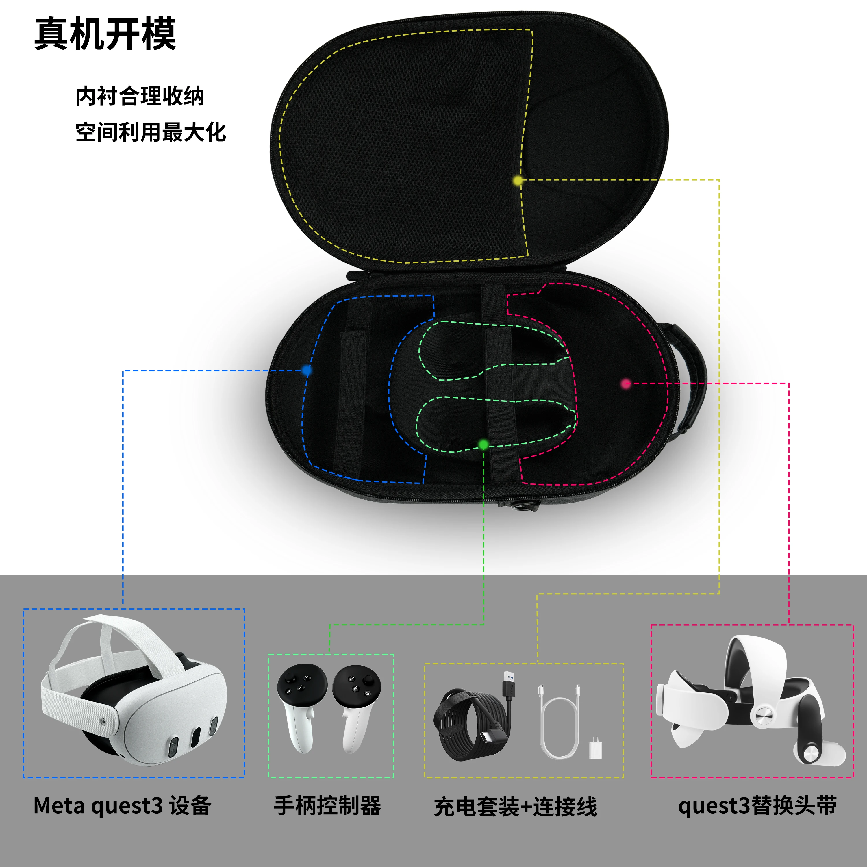 VR 메타 퀘스트 3 VR 안경용 숄더백 휴대용 보호 상자 충격 방지 스크래치 방지 휴대용 여행 보관 가방