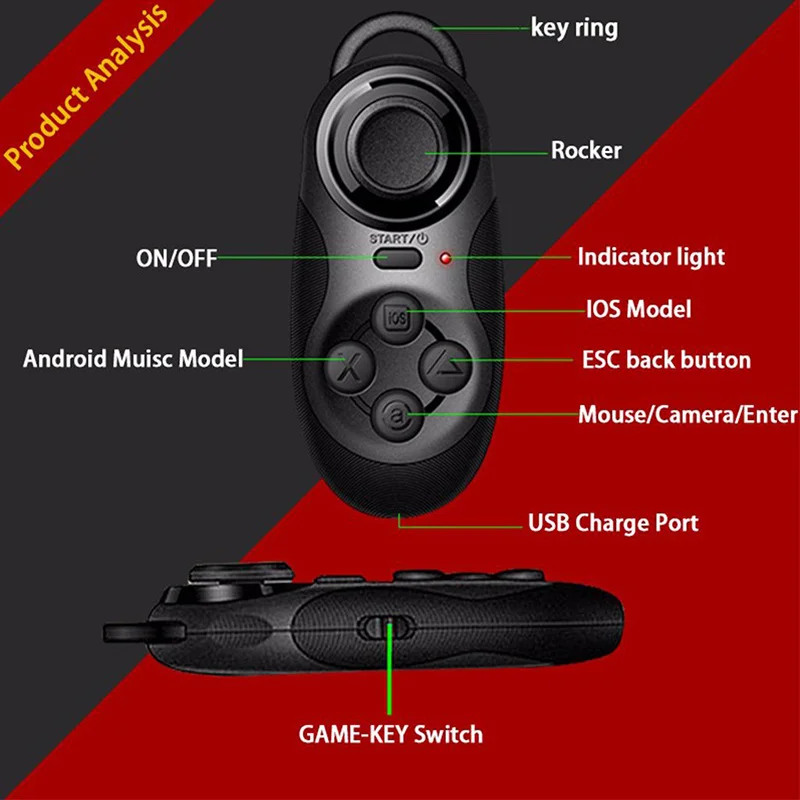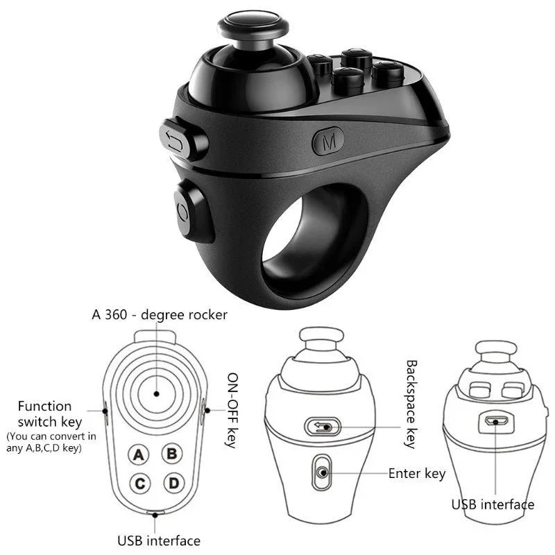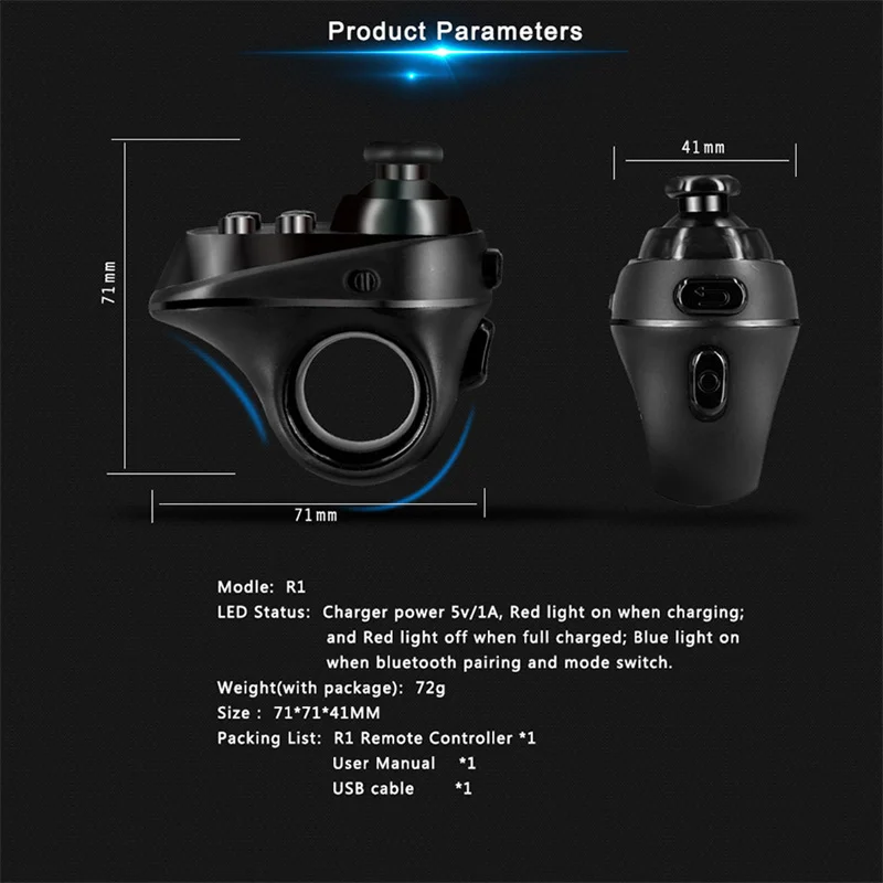 VR 게임 컨트롤러 R1 미니 소형 링 블루투스 호환 무선 VR 원격 제어 게임 패드 플레이스테이션 안 이드 3D