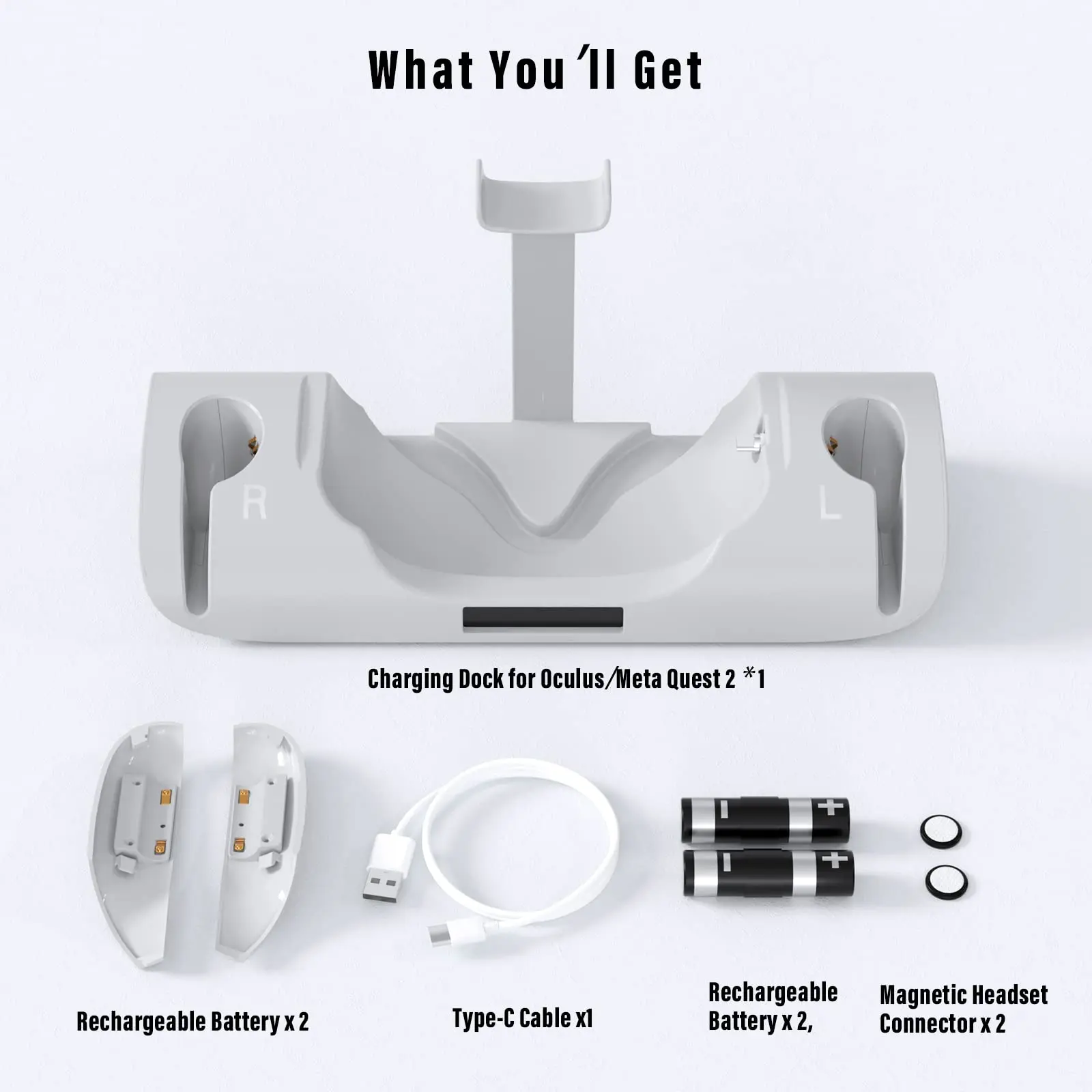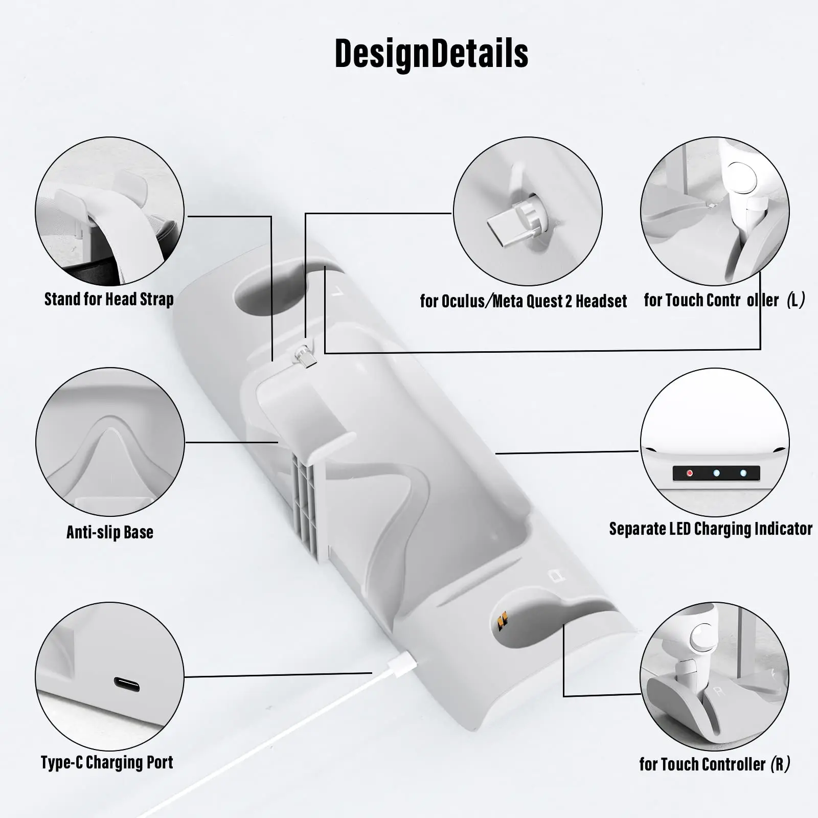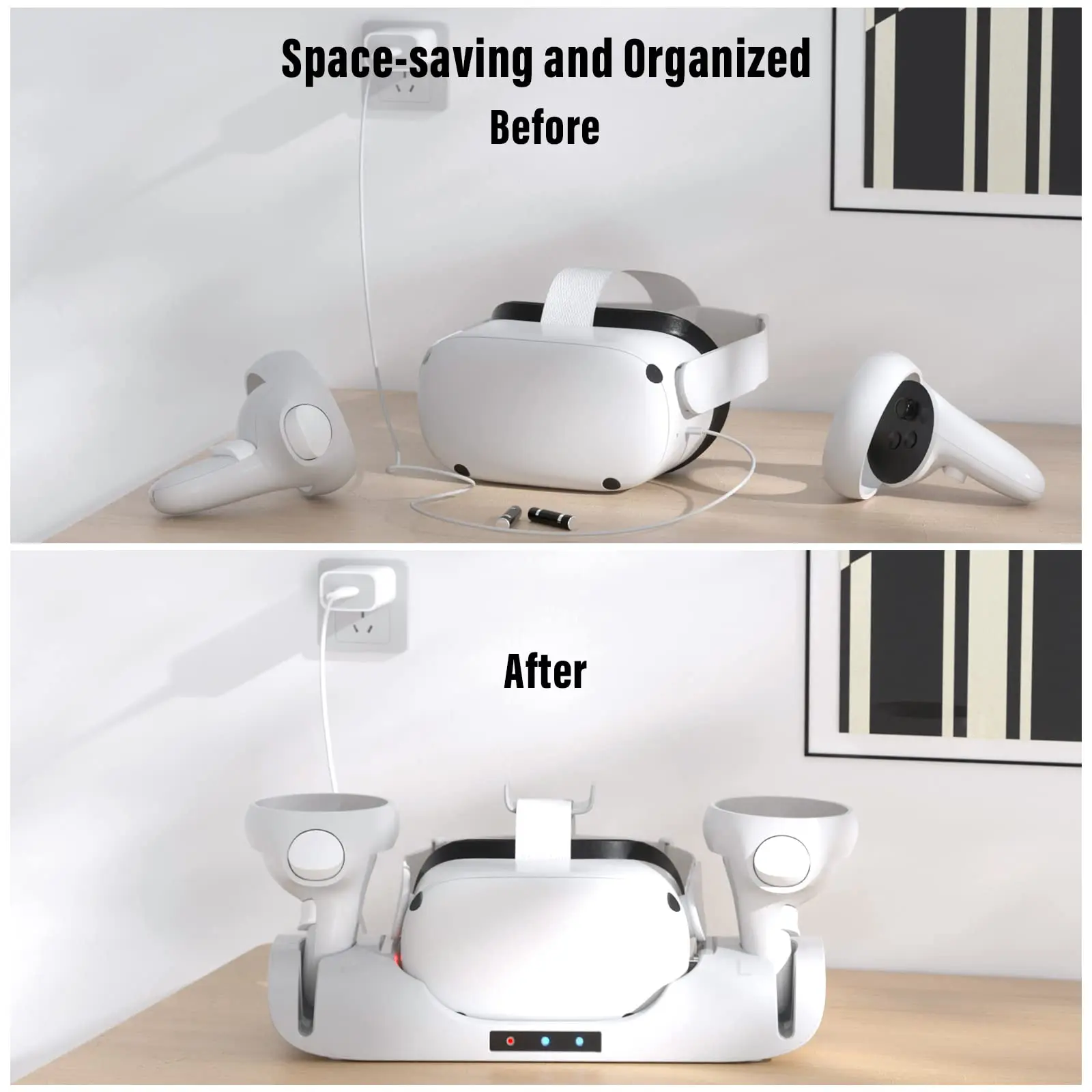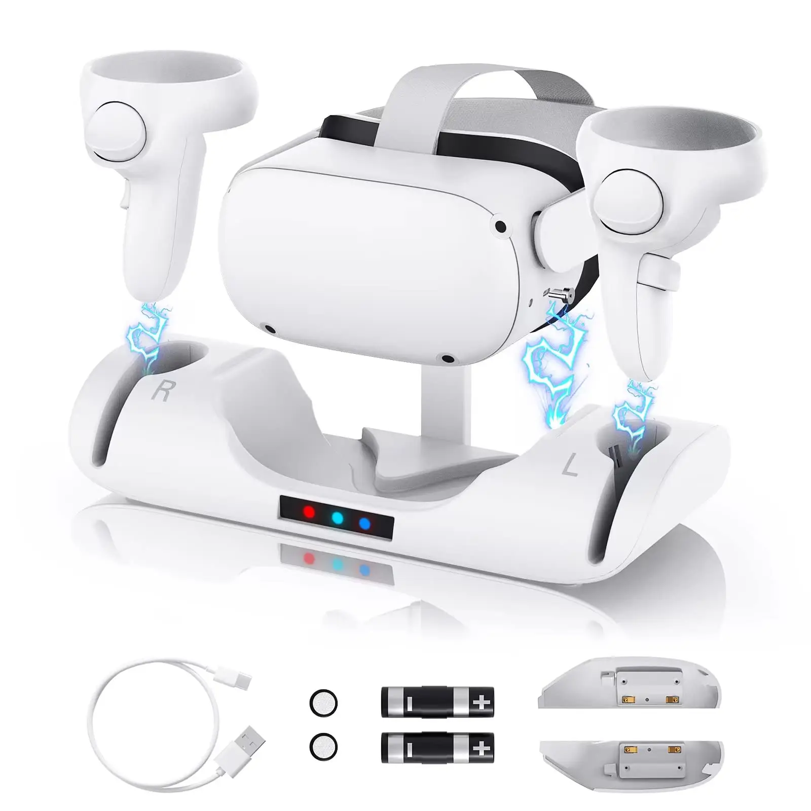 VR 메타 퀘스트 2 용 VR 충전 독 컨트롤러 및 헤드셋 동시 충전 VR 충전기 스테이션 액세스 USB C 고속