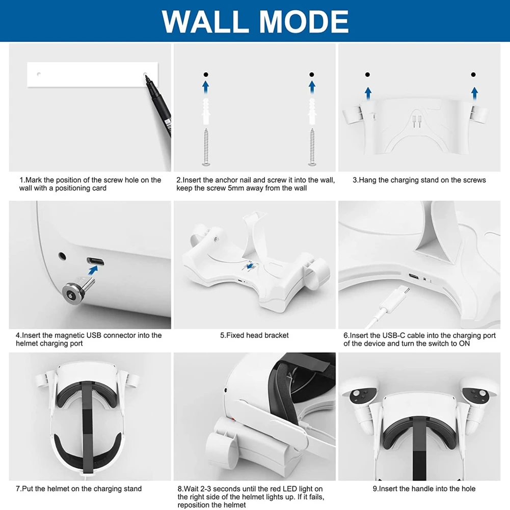 VR VR 충전 도크 스탠드 세트 퀘스트 2 컨트롤러 마운트 스테이션 베이스 헤드셋 디스플레이 거치대 오큘러