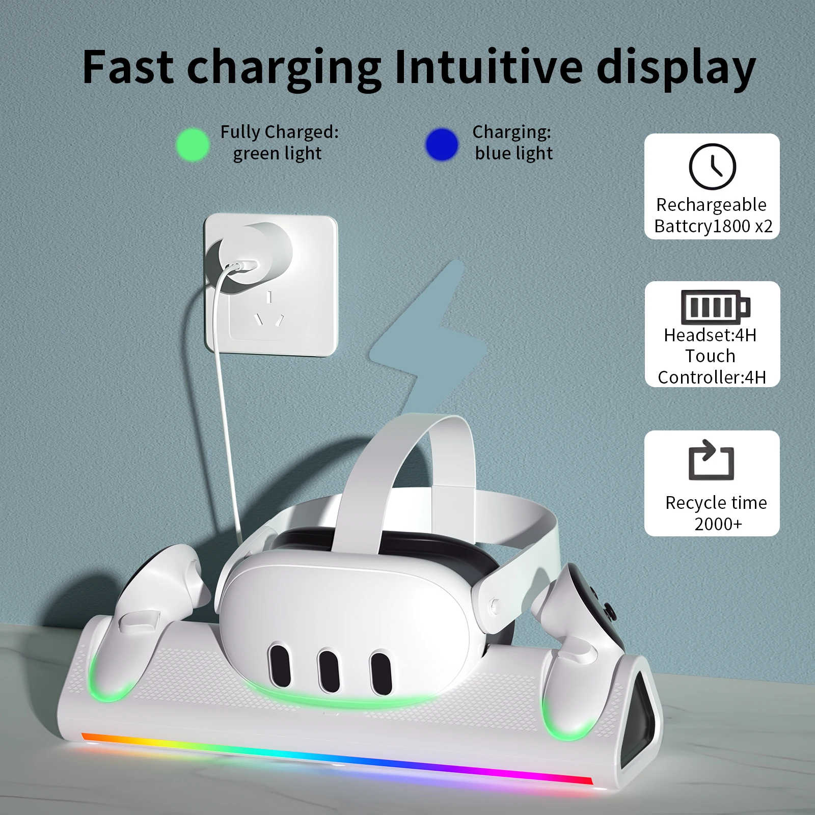 VR 충전 베이스 스테이션 VR 헤드셋 마그네틱 충전 도크 듀얼 컨트롤러 접촉 충전기 스탠드 오큘러스 퀘스