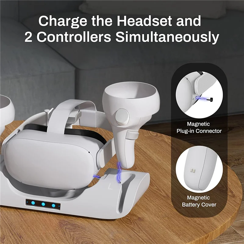 VR 메타 퀘스트 2 용 VR 충전 독 충전 컨트롤러 및 헤드셋 동시 사용 VR 충전기 스테이션 액세서리