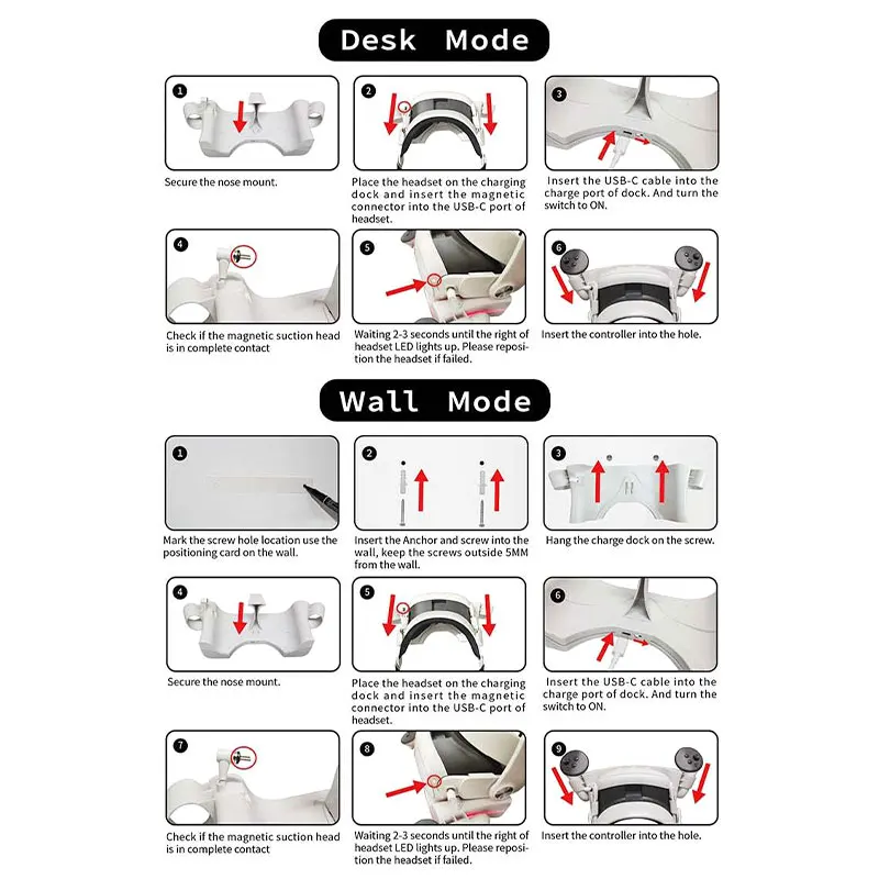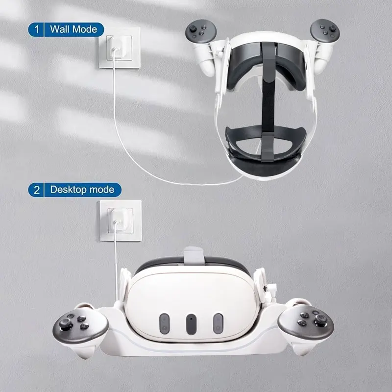 VR LED 표시등 VR 헤드셋 벽걸이 및 데스크탑 디스플레이 거치대 충전기 스테이션 메타 퀘스트 3 용 충전