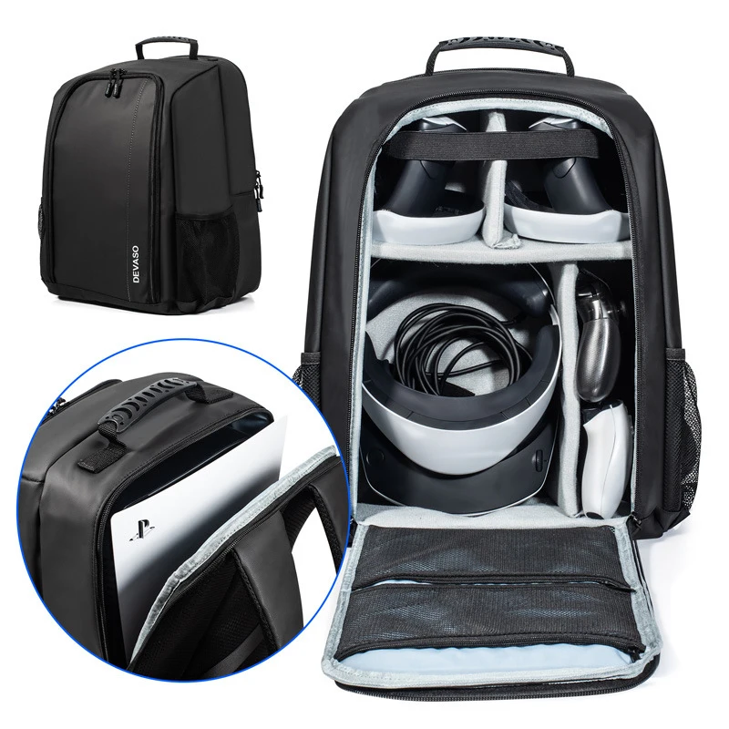 VR DEVASO PS5 슬림 게임 콘솔 VR 안경 배낭 플레이스테이션 5 및 PSVR2 게임 액세서리 대용량 여행 보관