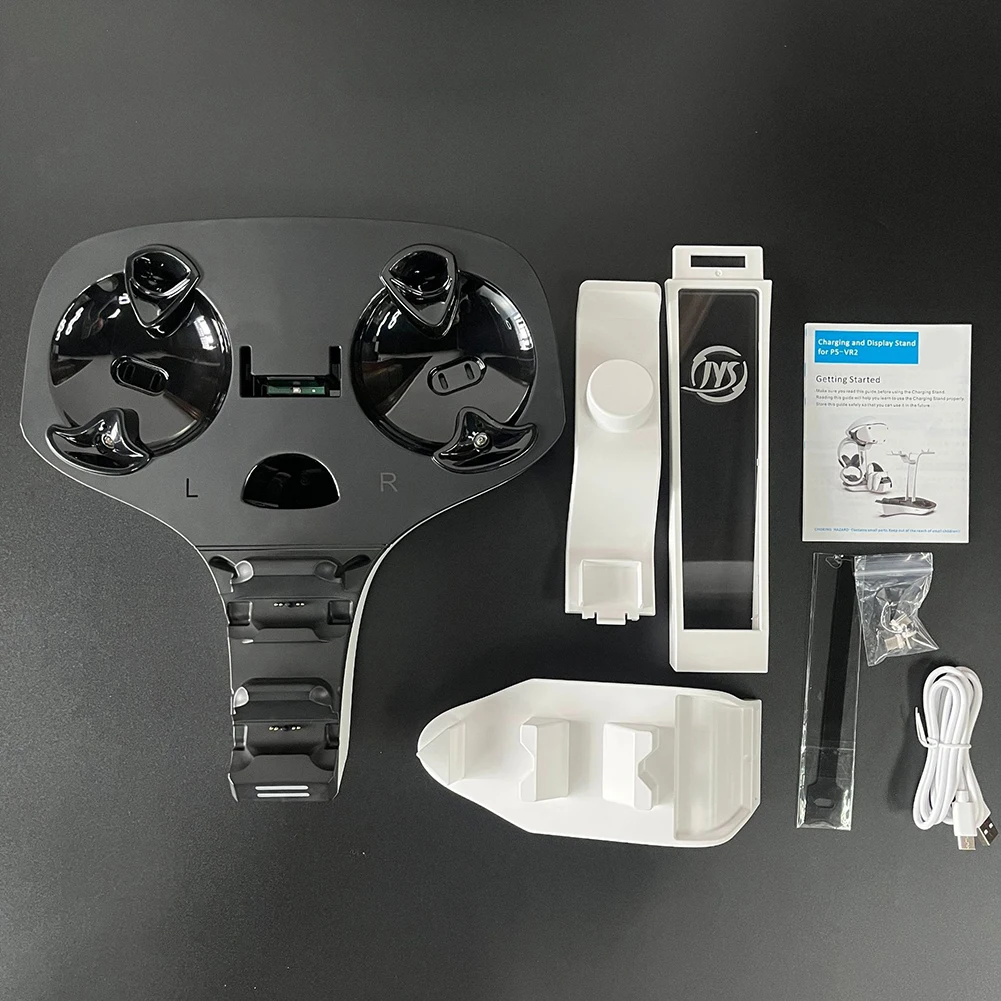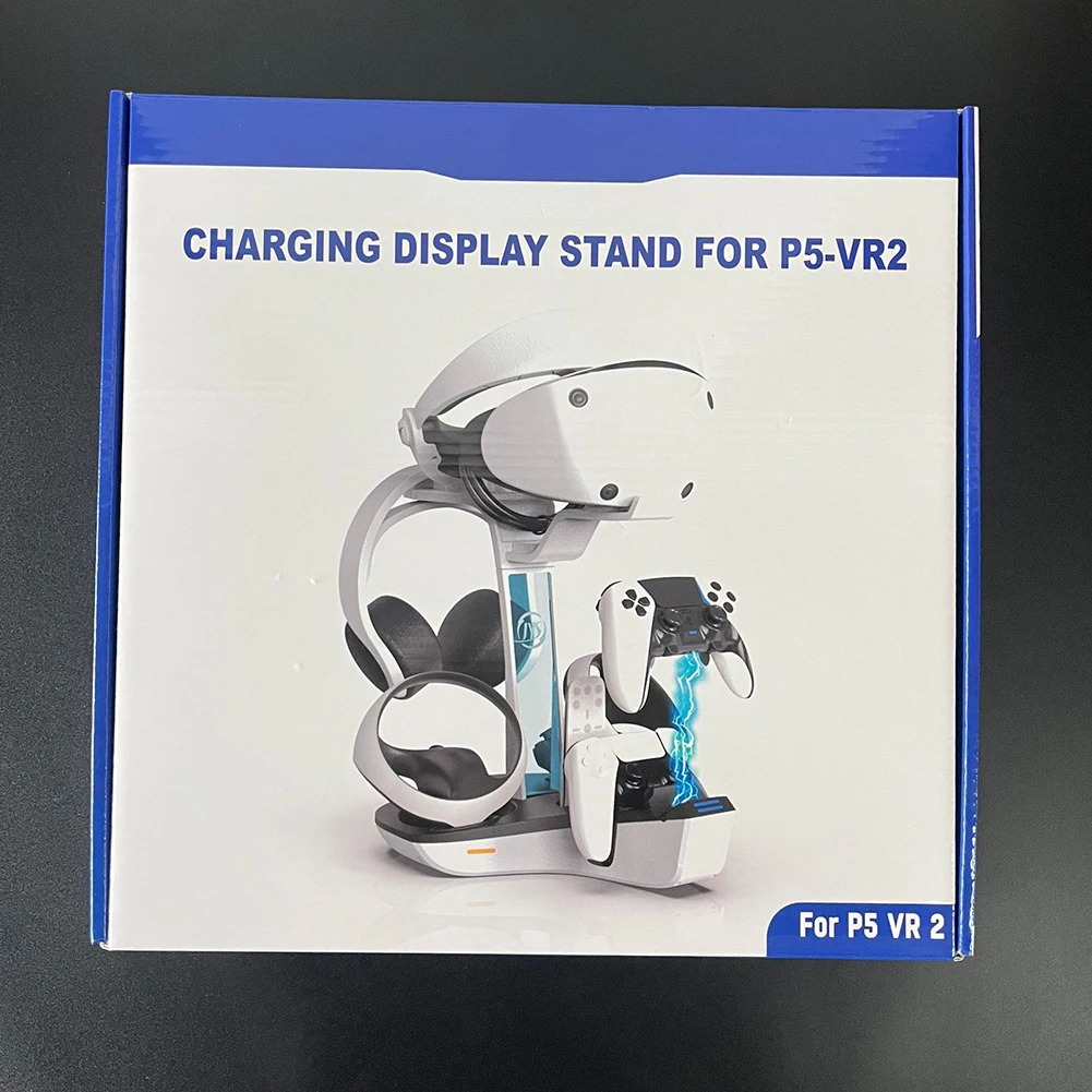 VR PS5 PS VR2 용 충전 도크 헤드셋 스탠드 컨트롤러 충전기 스테이션 LED 표시등 수납함 헬멧 이어폰 브래