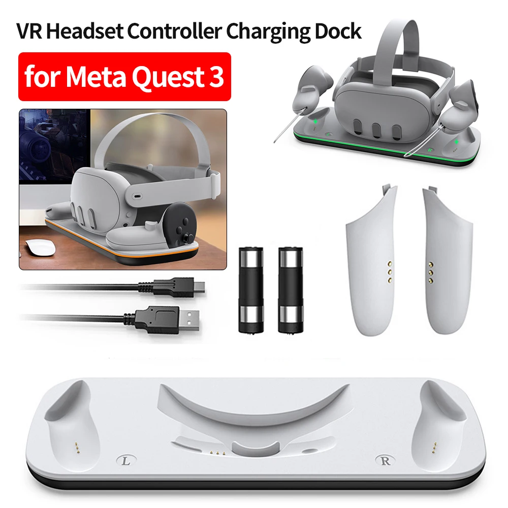 VR VR 헤드셋 컨트롤러 충전 도크 헬멧 고속 충전 베이스 충전식 배터리 2 개 포함 메타 퀘스트 3 용 USB