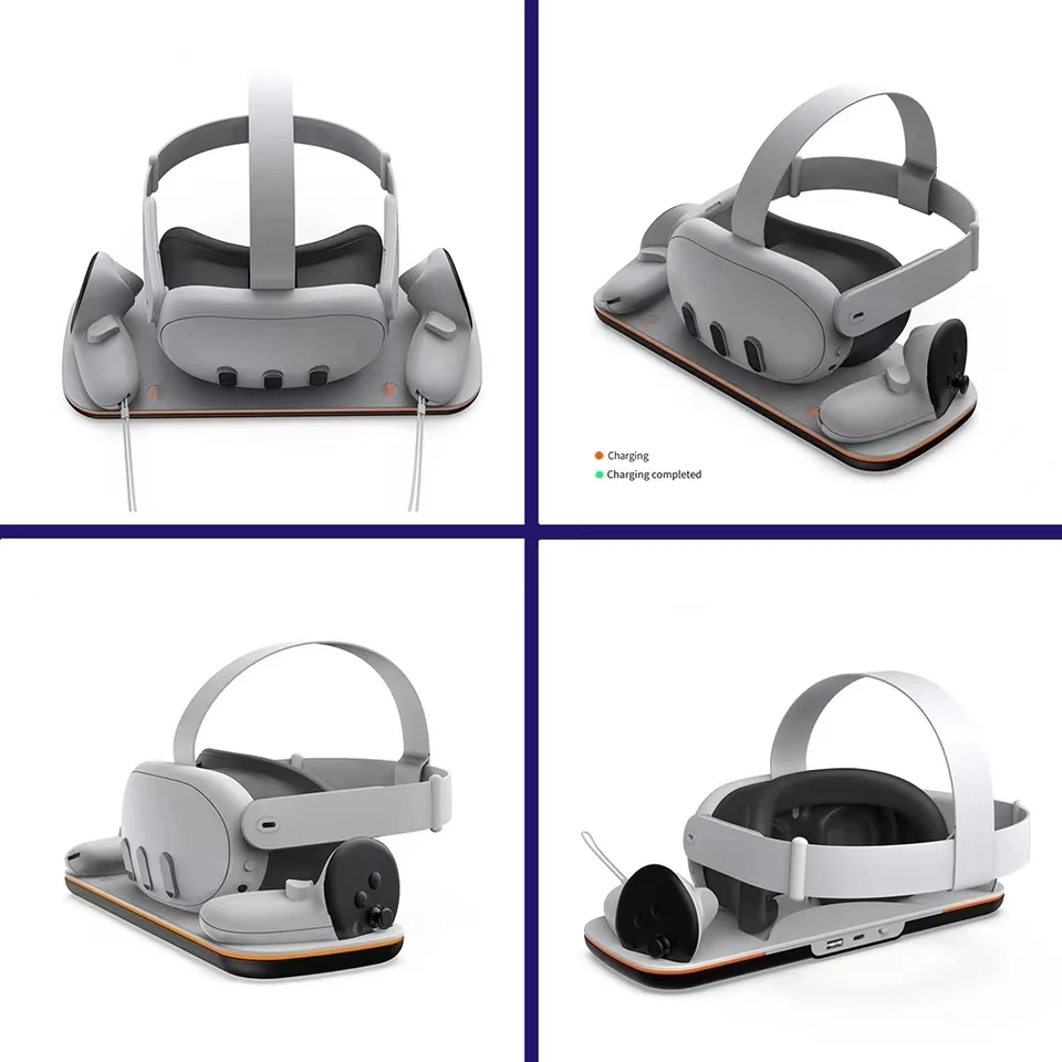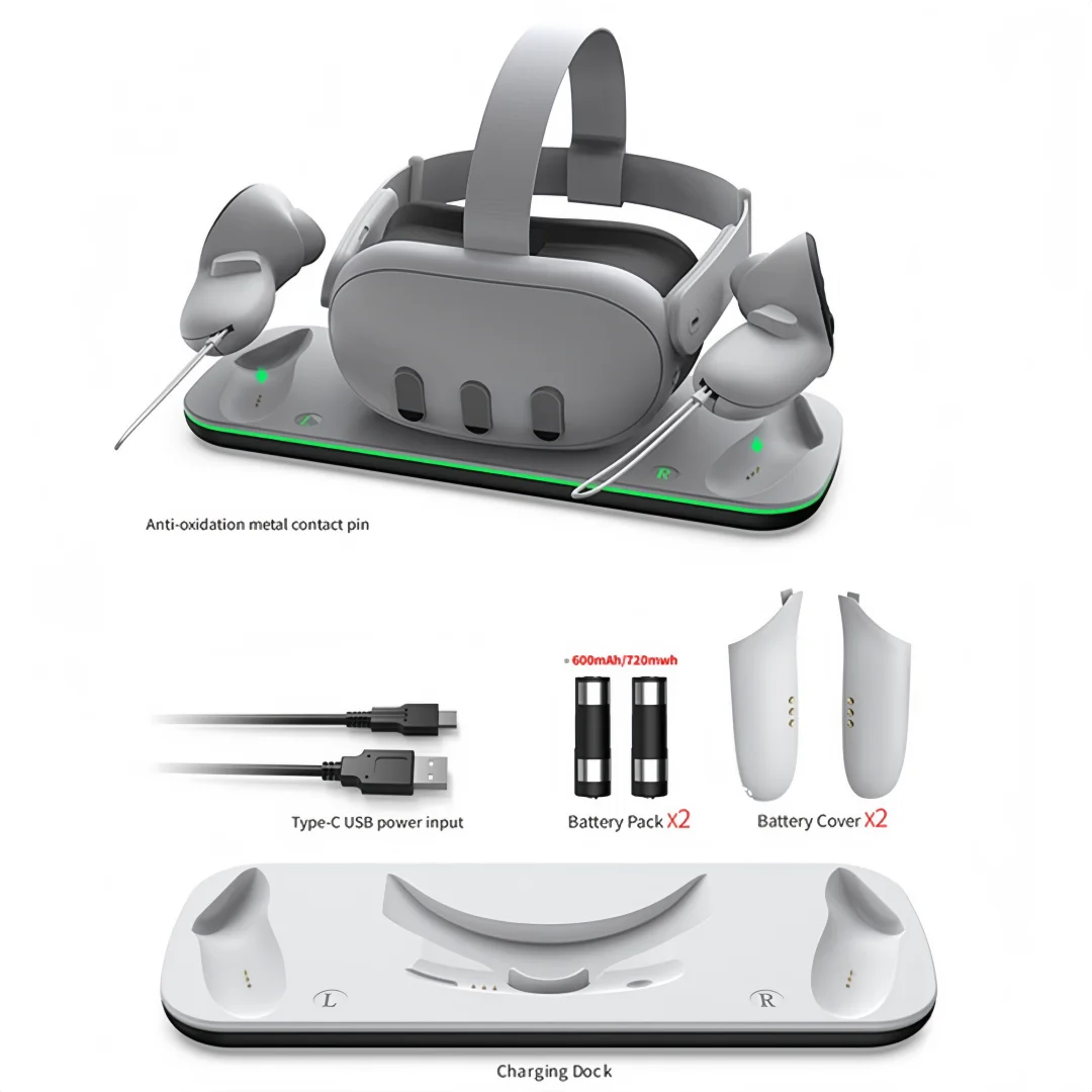 VR 메이트 퀘스트 3 용 충전 독 VR 헤드셋 및 컨트롤러용 마그네틱 충전 스테이션 충전식 배터리 2 개 포함
